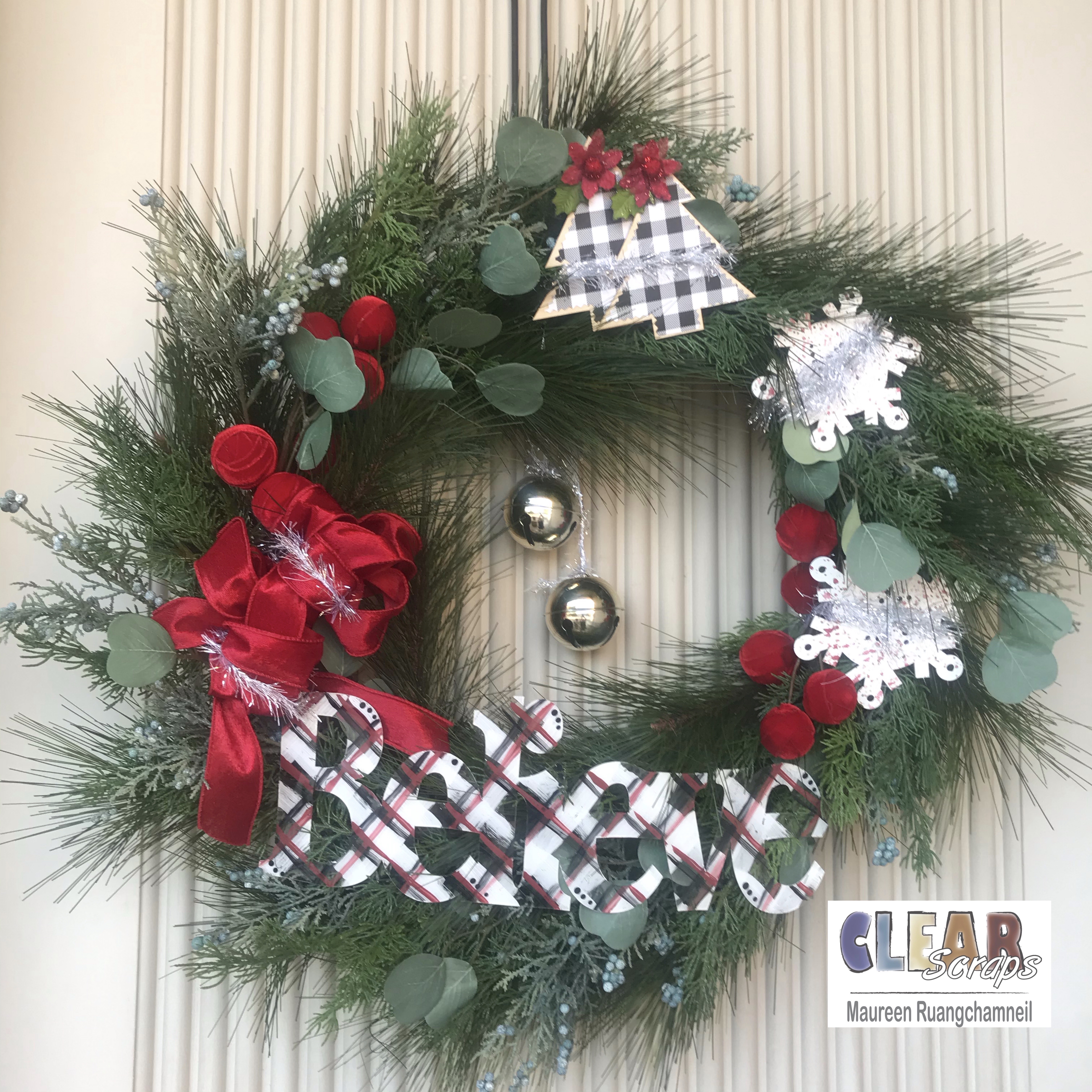 Hello Clear Scraps friends – a happy December to you all! I just finished up decorating the house for Christmas, and after unpacking the decorations I realized I needed a new wreath for my door. I shopped for quite a while but couldn't really find something I liked. So, I did what any crafty person does – I decided to make my own!