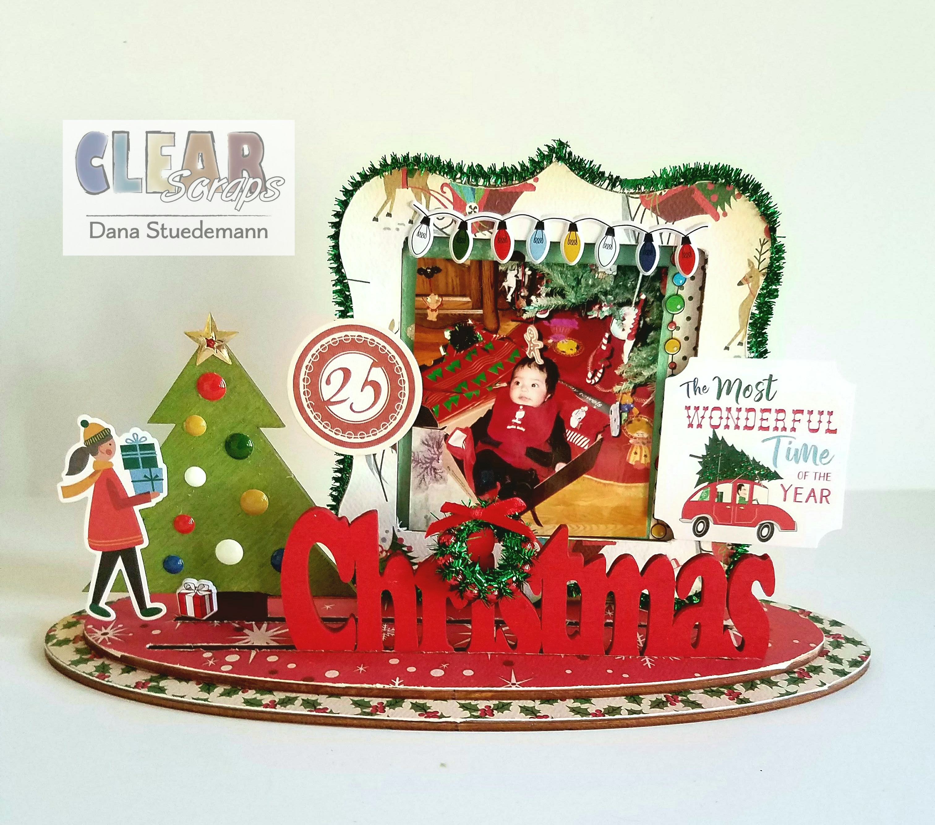Dana here! I'm back on the Clear Scraps blog to hopefully inspire you with a fun Christmas Home Decor project using Clear Scraps 3D Frameables! They are so easy and fun to create. For today's project I'm using the base and Deco frame Click Here plus Christmas word and tree shape. Click Here