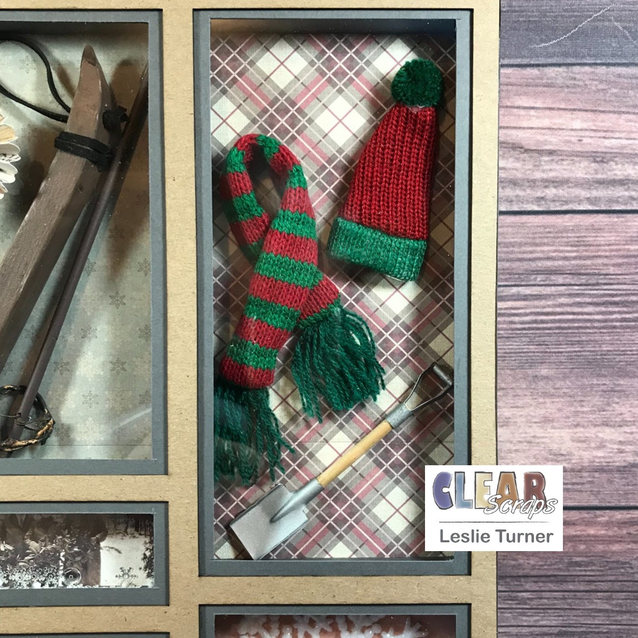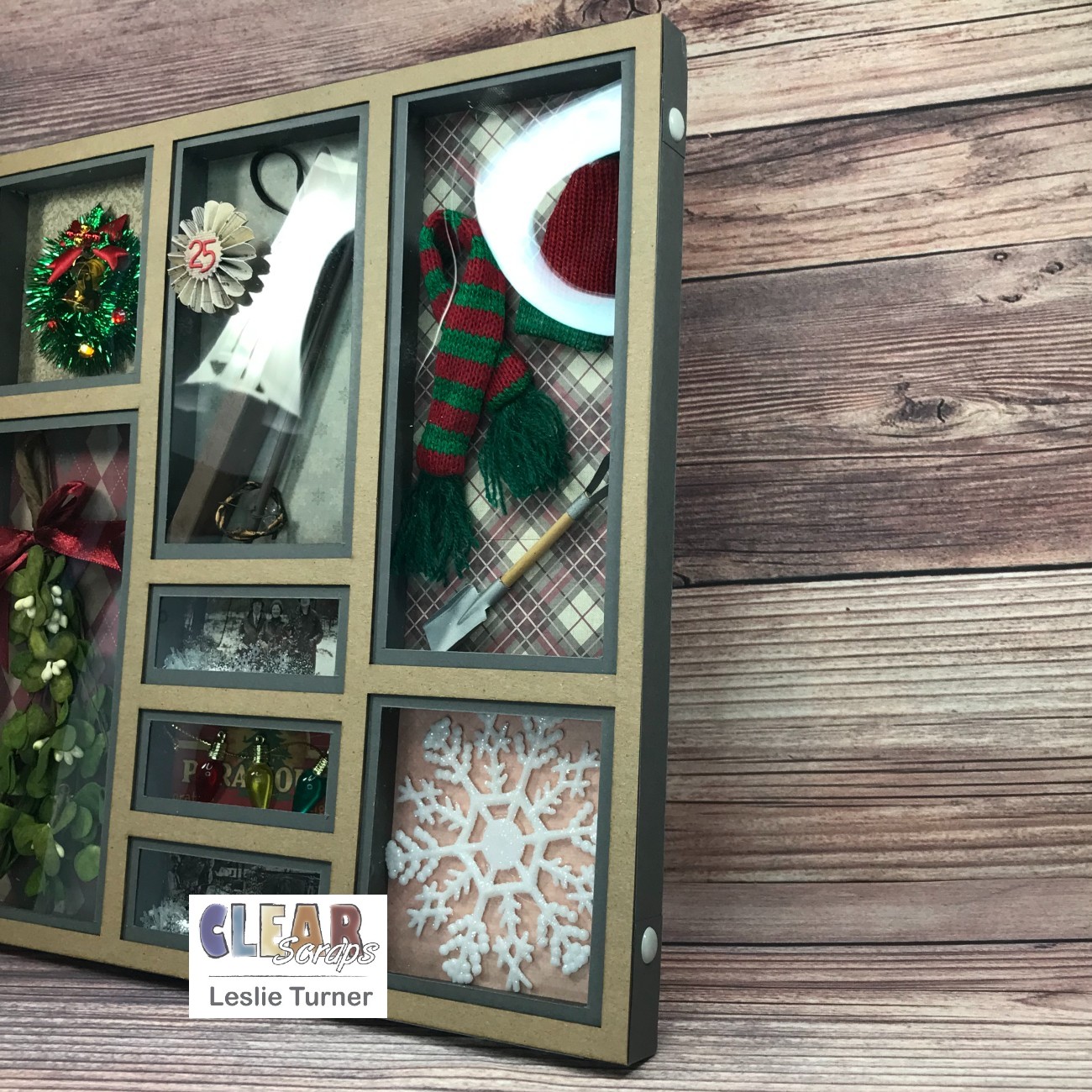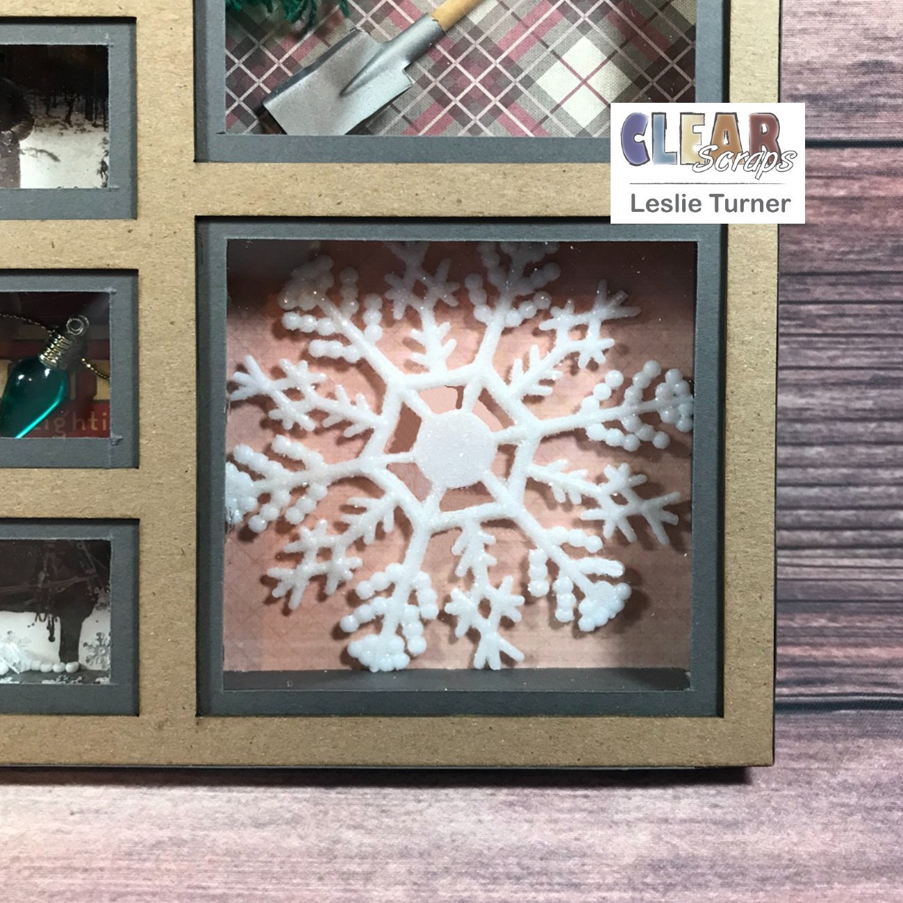 Hi everybody! Leslie here, sharing a fun vintage Christmas shadowbox created from our Small Rectangle Printer Tray Frame! I added several strips of double-sided adhesive foam tape between each of the chipboard layers so the compartments were deep enough to accommodate the vintage Christmas elements. I bought all of these fun vintage items (wreath, mistletoe, wood ski and pole, Christmas lights, scarf and hat, shovel, and snowflake) several years ago along with a different kind of shadowbox, and the shadowbox turned out to be too small, so everything just sat in my stash… until now!