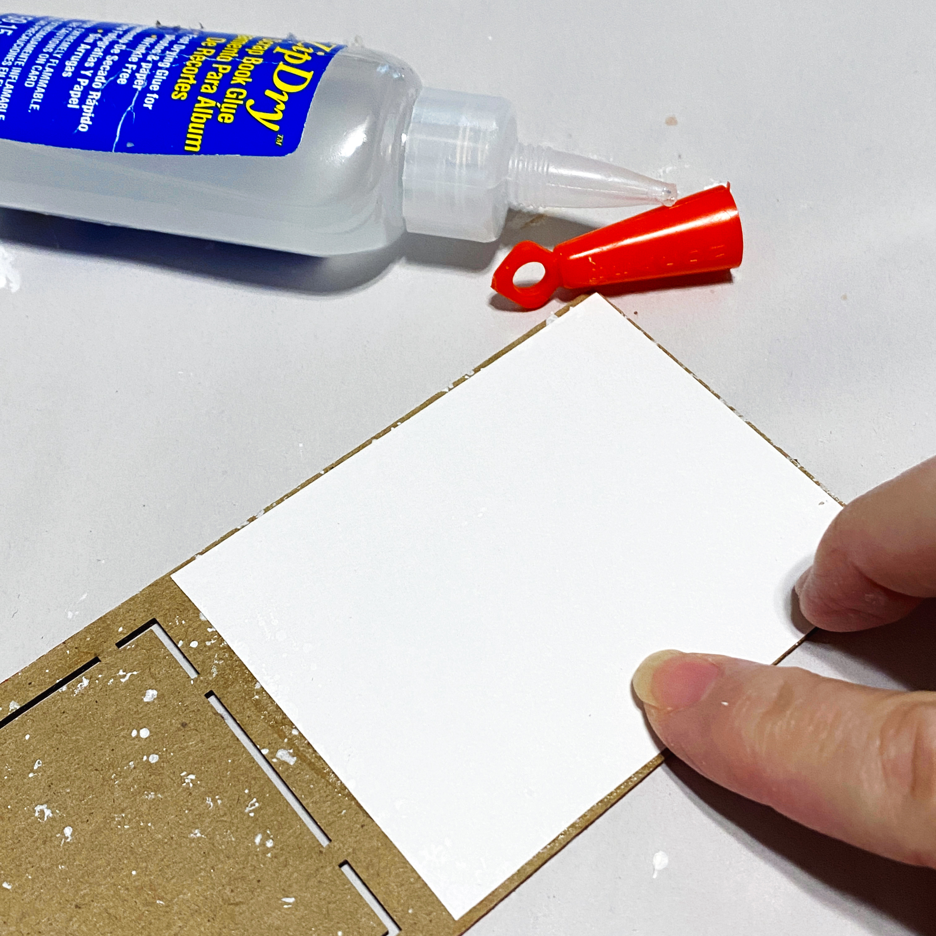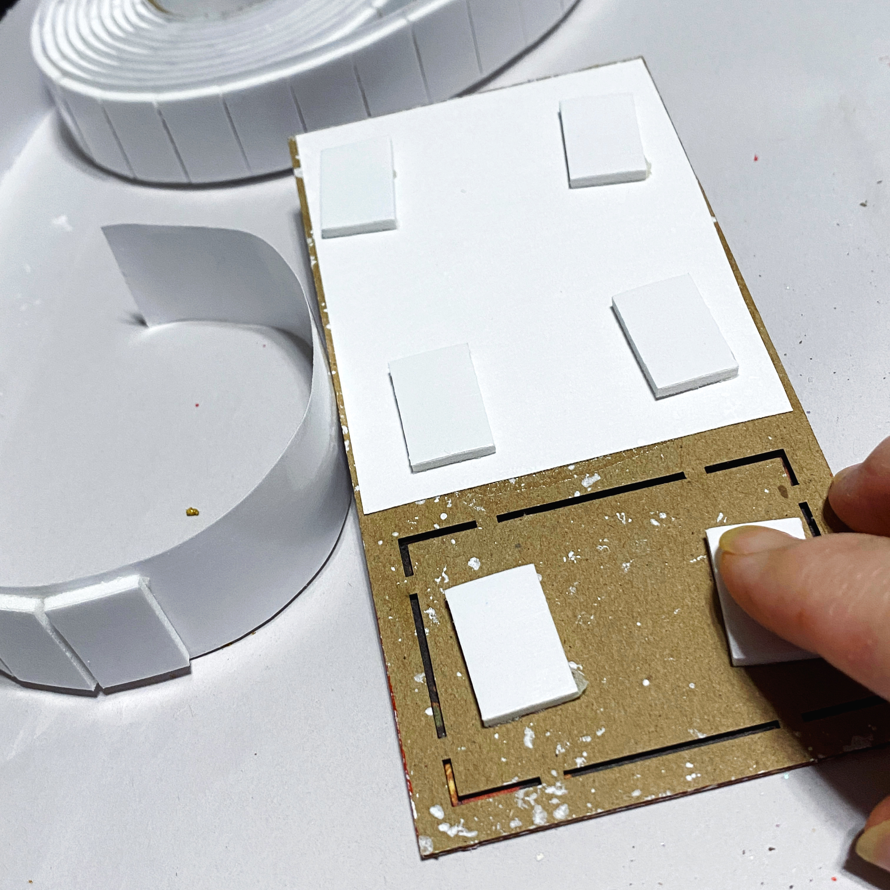 I cut a small piece of printed paper to use for the bottom of the door. You could also remove this piece and back it like I did on the top. I adhered the paper, then used the pouncing brush again to add snow to the door…