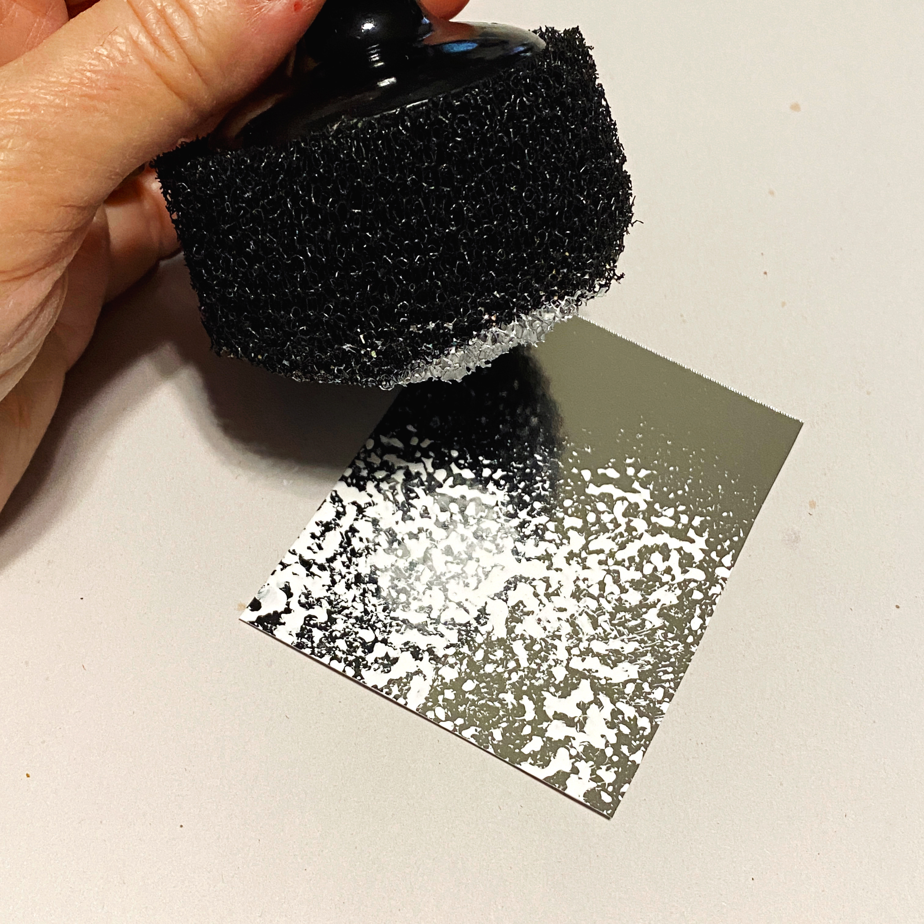 I used a piece of silver foil paper to back the upper portion of the door. I used a pouncing brush with white paint to make it look frosty. Then I adhered the foil into the top portion of the door…