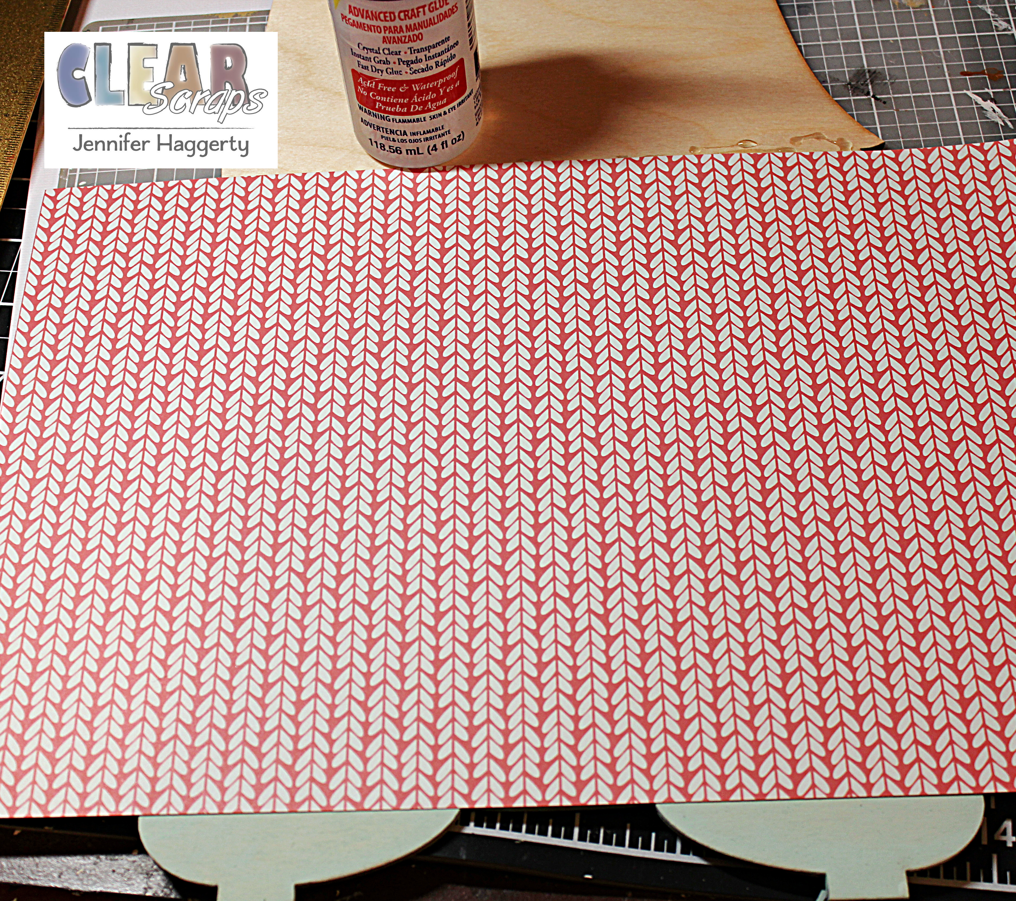 I covered the two oval bases with patterned paper and affixed them together with my hot glue gun. I did add a little extra glue to the slots where the feet insert for sturdiness.