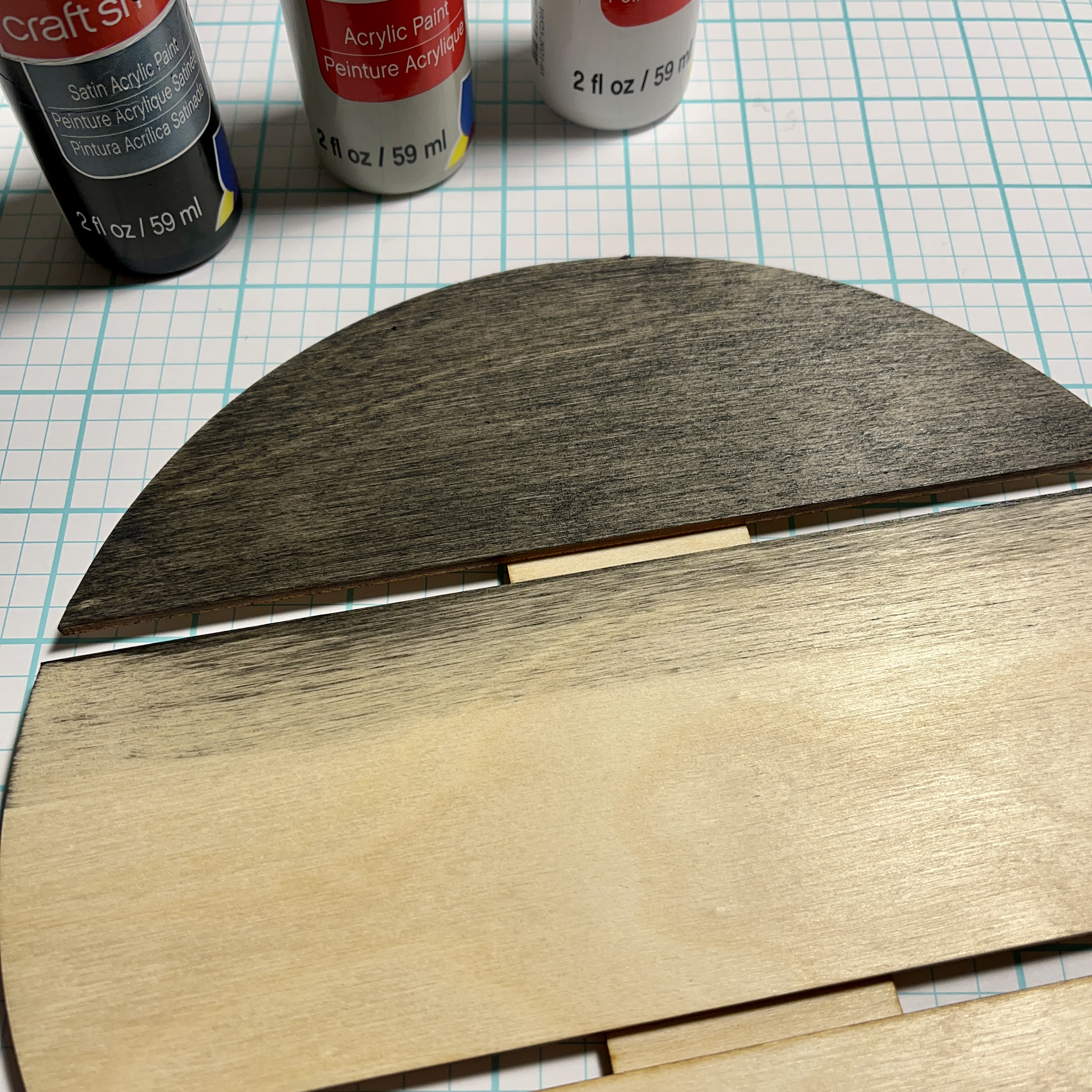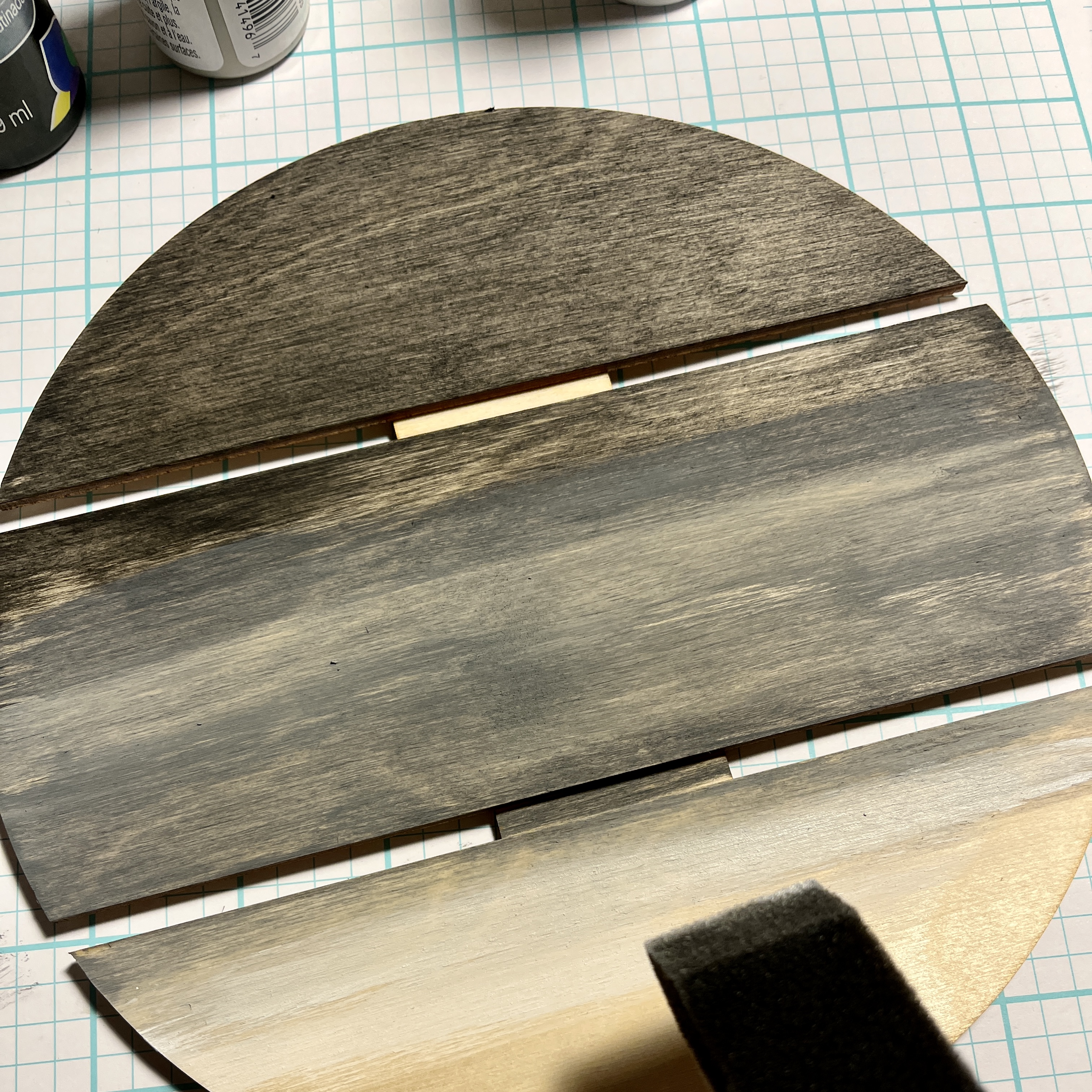 PAINTING: To achieve an ombre look, I'm going to be "dry brushing" the Medium Circle DIY Pallet Shape from dark to light. On the top panel I've taken a sponge brush, dipped it in black and brushed most of the paint off. Then I sweep back and forth until I get a light coverage. The more I work down the panel, the lighter my touch is with the paint. If you need to reapply paint at any time, brush most of it off on a separate piece of paper.