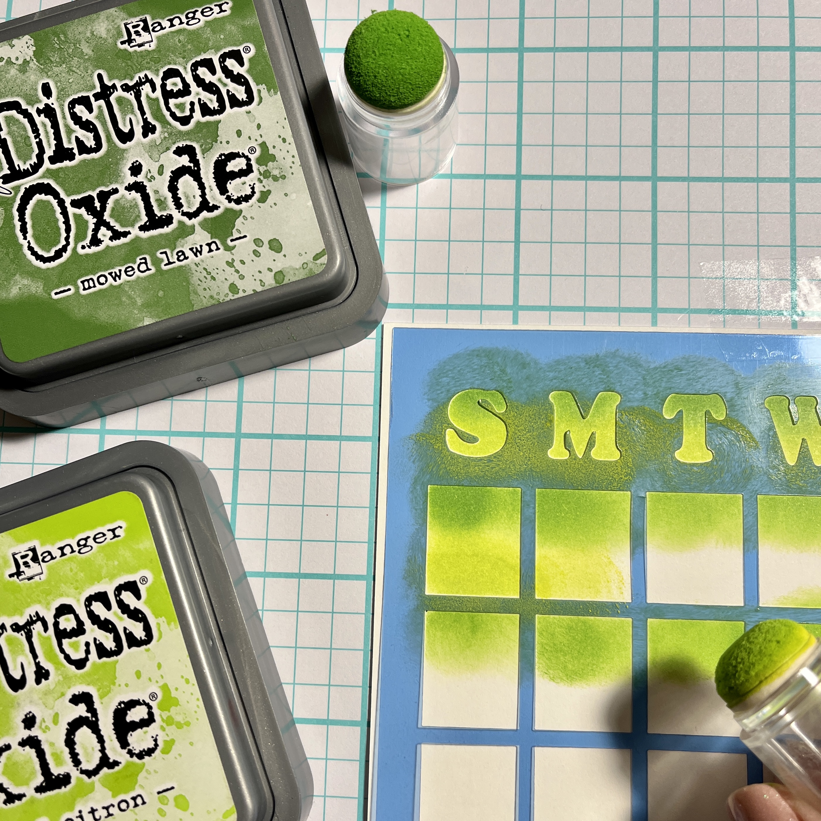 PAPER CRAFTED CALENDARS: I've prepped 12 – 6" by 6" pieces of card stock for the calendar layouts, and will be using the Clear Scraps 6" Calendar Masking Stencil as my background. Each page will be sponged with distress inks then decorated with a variety of stamps and gel pen outlines.