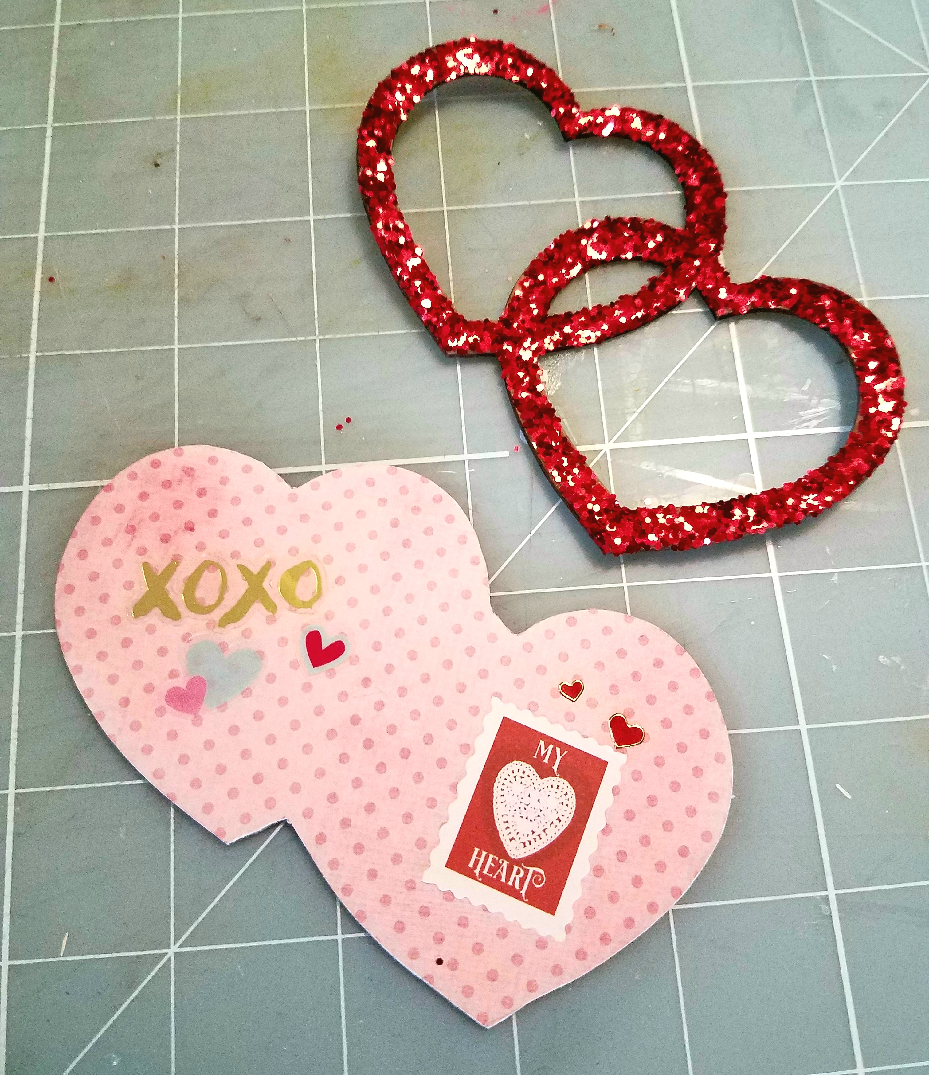 For the Valentine card we'll be creating today, I'm using Clear Scraps mini Double Hearts shaker. Click Here I think shaker cards as much fun to make as to receive.