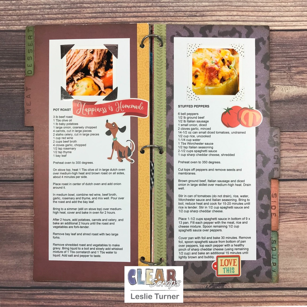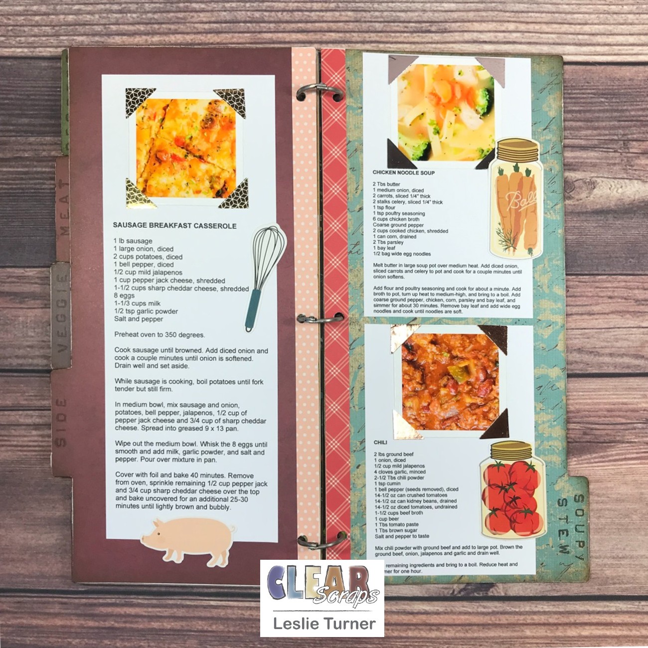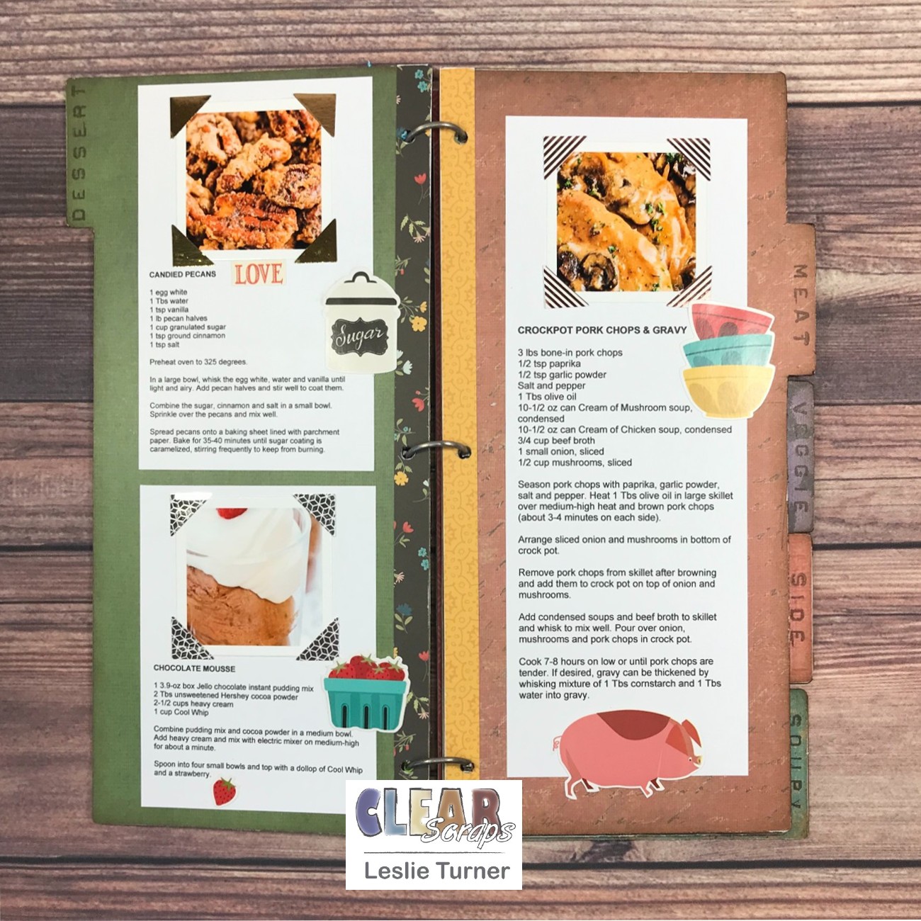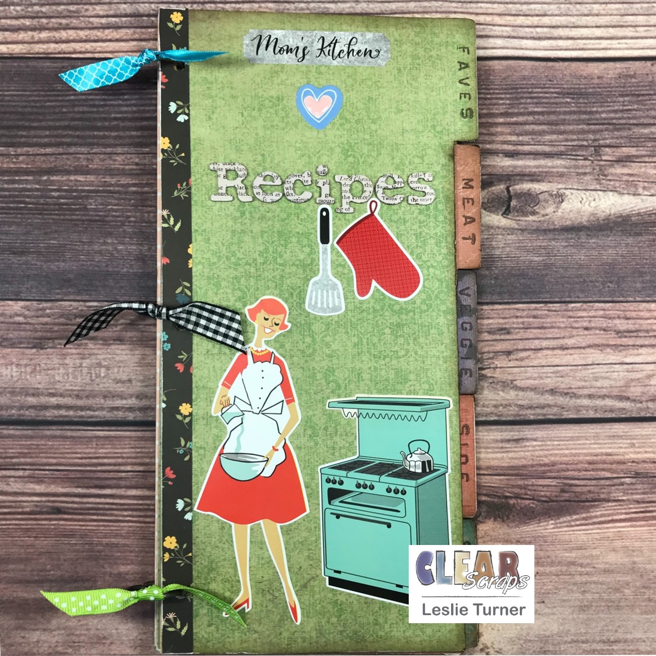 Hi everybody! Leslie here, sharing a fun vintage recipe album featuring our Slimline Acrylic Tab Album! This mini collection of my favorite recipes has two each of Dessert, Meat, Veggie, Side and Soup/Stew. I have to say that the hardest part was narrowing down my favorites since I have so many, lol!