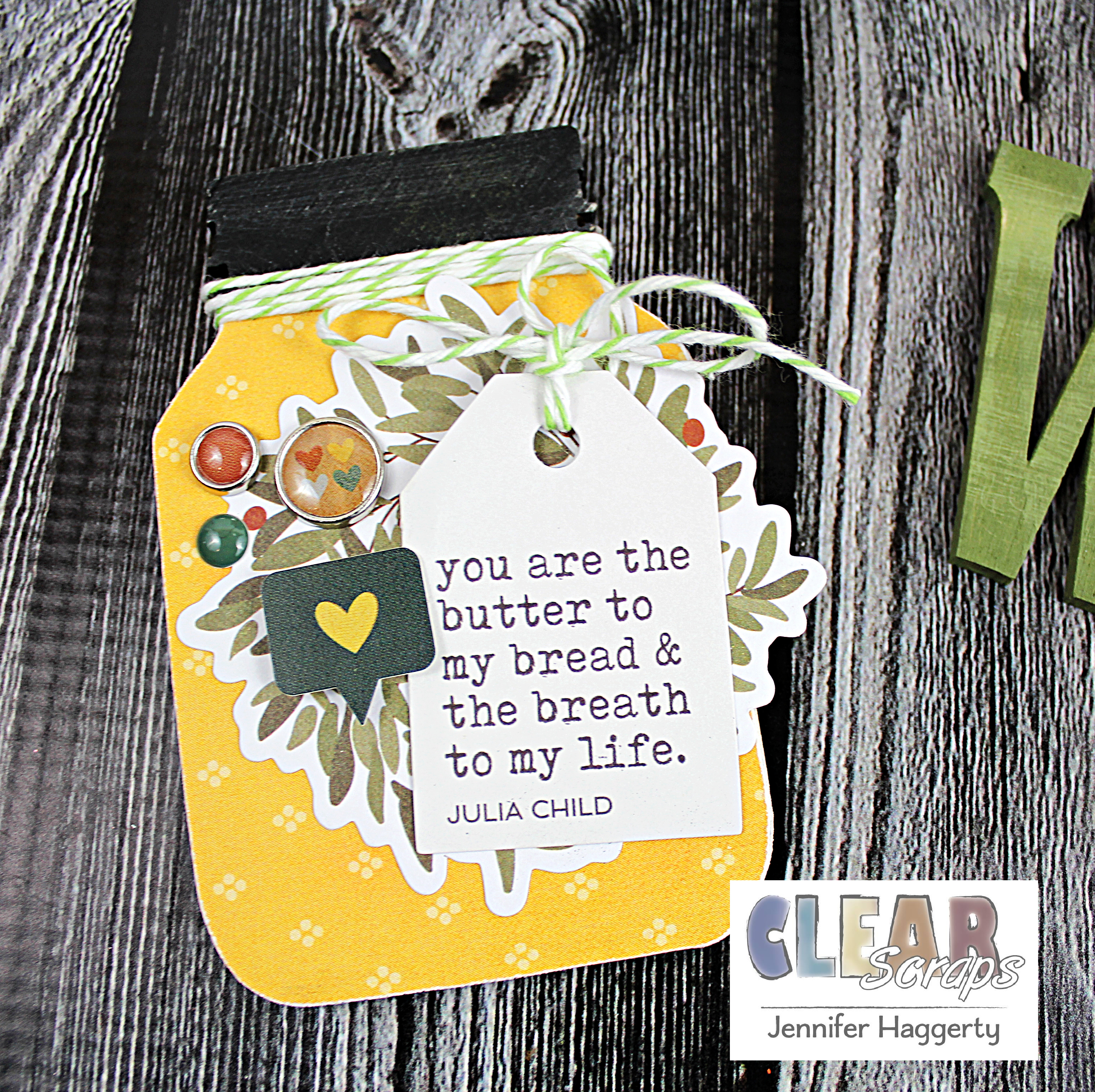 I added bakers twine as well as embellishments from the collection I used to accent the Jar.