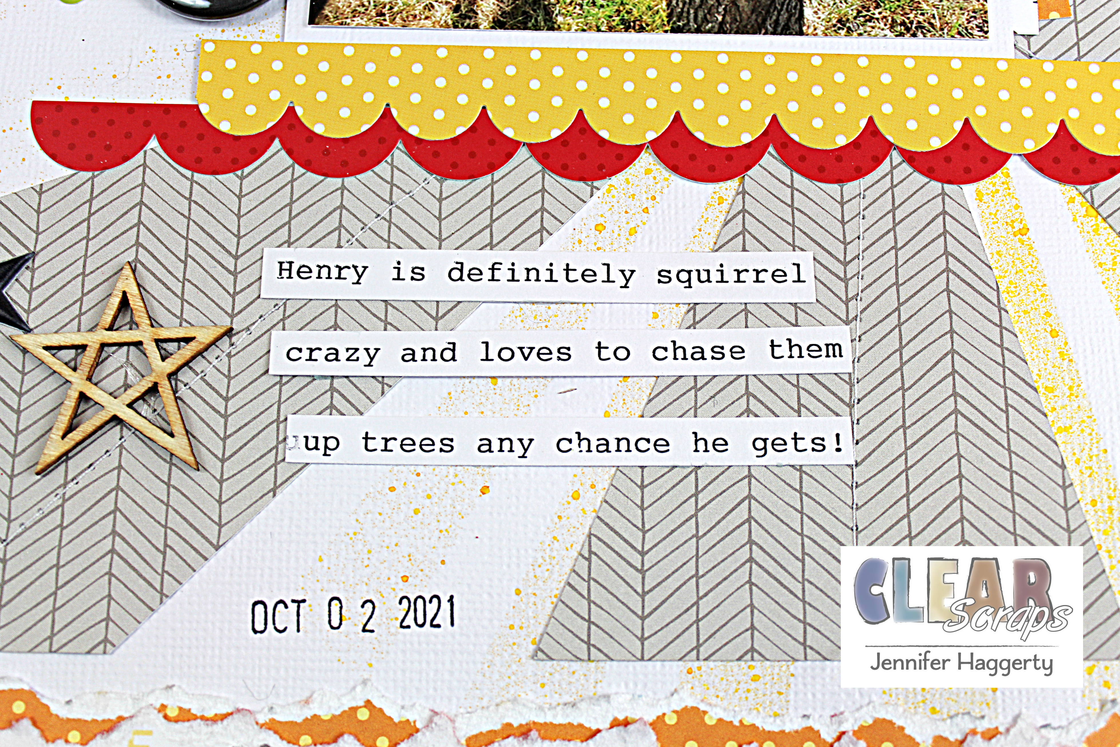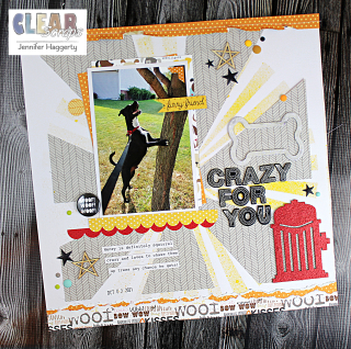 Hello friends! Happy Saturday! It's Jennifer here today to share a layout I created using some cute dog themed embellishments, the Bone n Hydrant Chipboard Embellishment Shapes! I documented a fun photo of my dog (who happens to love chasing squirrels up trees) and thought these chipboard shapes would be perfect.