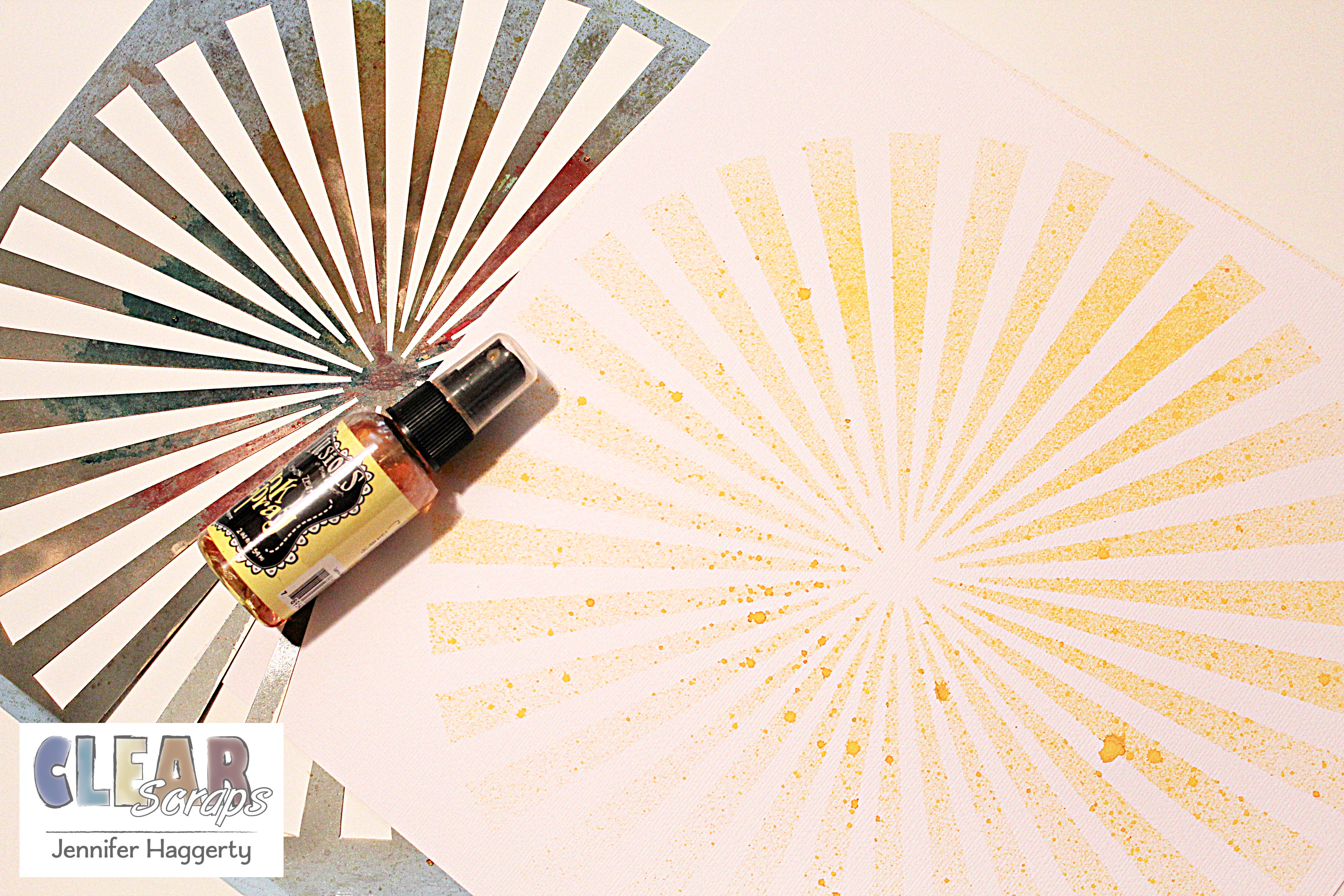 I began by using the 12 Inch Spiral Mascil and yellow spray ink to create a background on white cardstock.