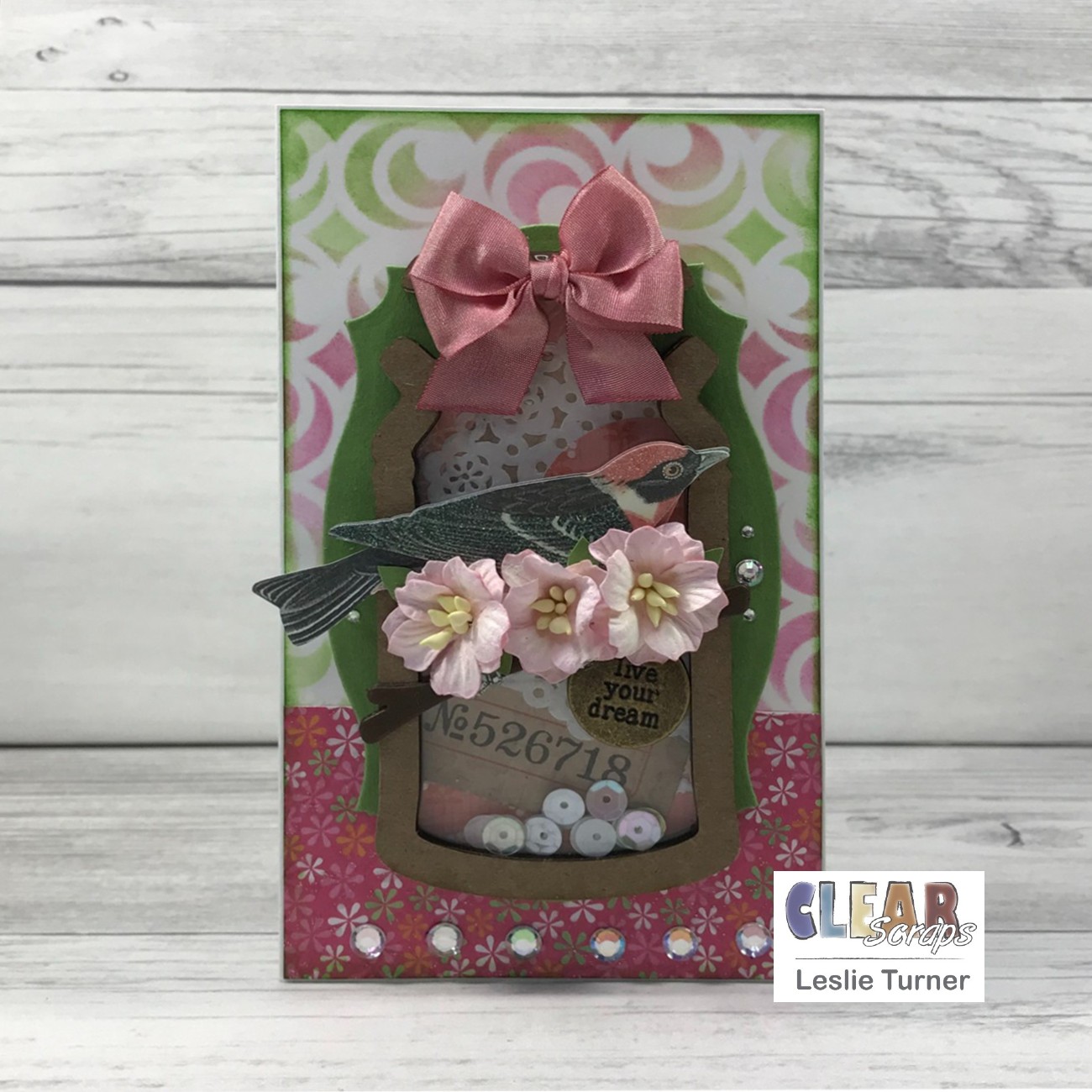 Hey everybody! Leslie here, sharing a pretty encouragement card in a green and pink color combo (one of my favorites) featuring our Mini Shaker Milk-Can and our 5×9 Circles Dots Stencil. Both products were new in the store last month and really fun to play with!