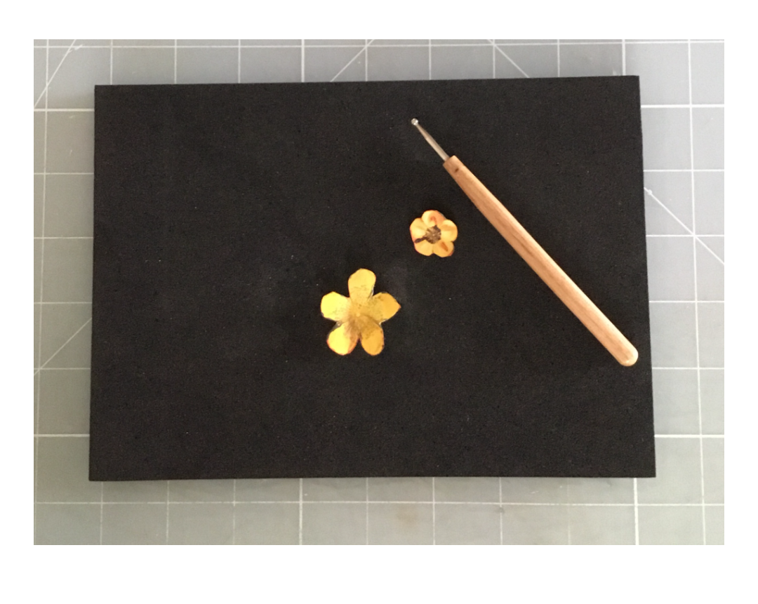 Take a foam mat and embossing tool, and rub in a circular motion in the center of each flower to create some lift to your flower petals.