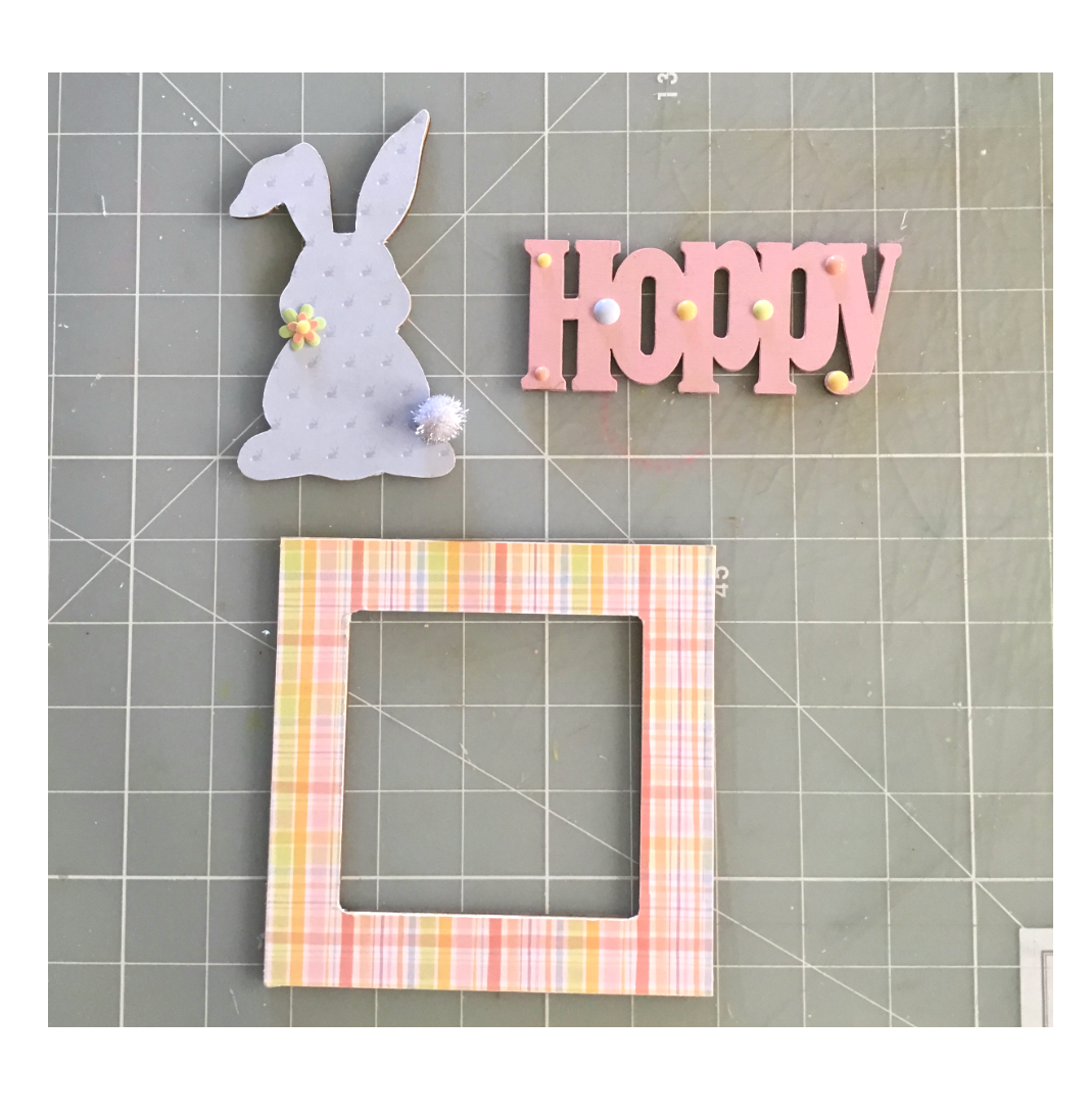Dana here! Today I'm sharing a home decor project using Clear Scraps new 3D Frameables! For this project we'll be using Clear Scraps Base and square frame Click Here along with Word and shape Hoppy/Bunny Click Here