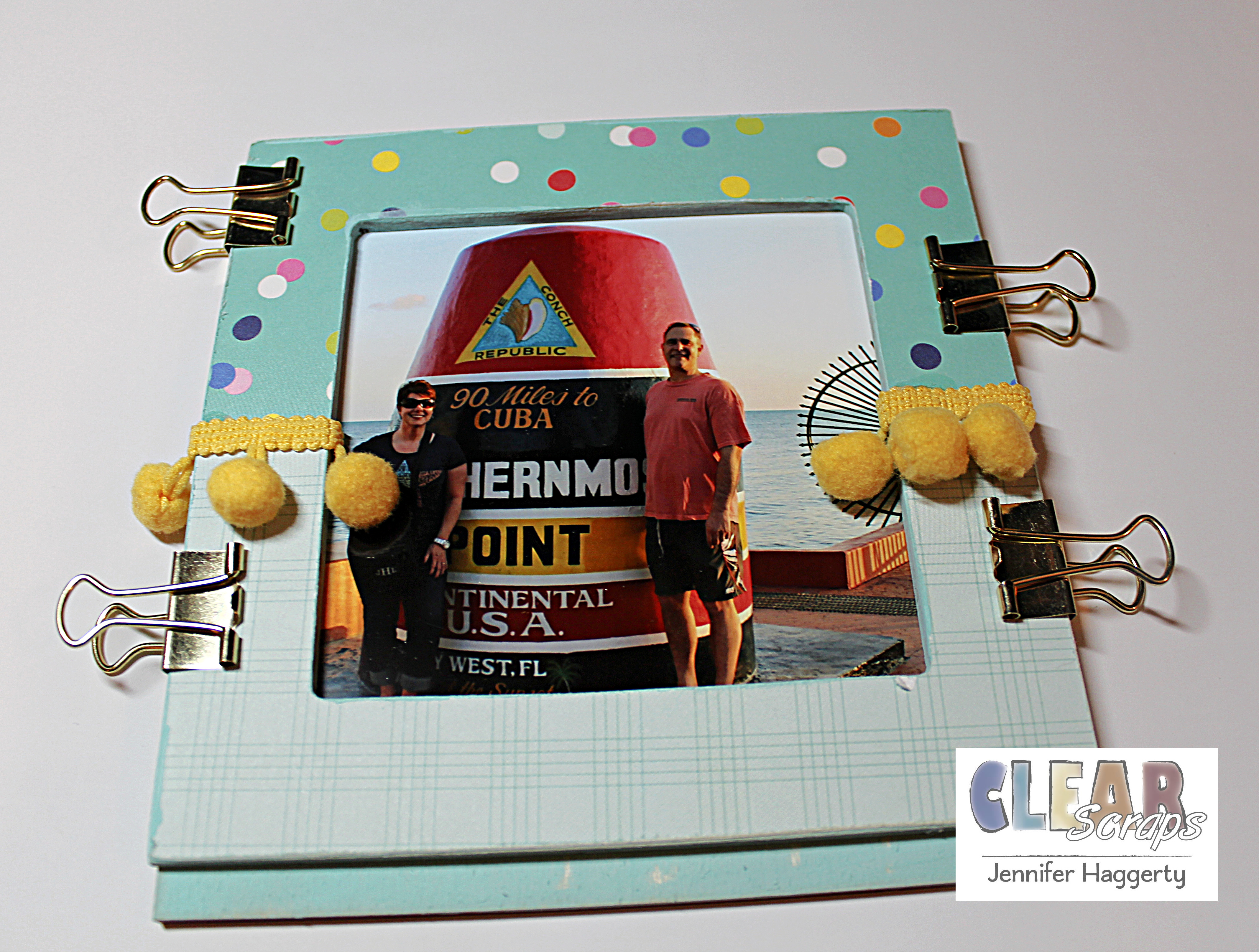 I again used my Beacon adhesive to adhere the square frame to the base as shown. I find it helpful to use clips to hold the two pieces together while my adhesive dries to ensure a good seal.