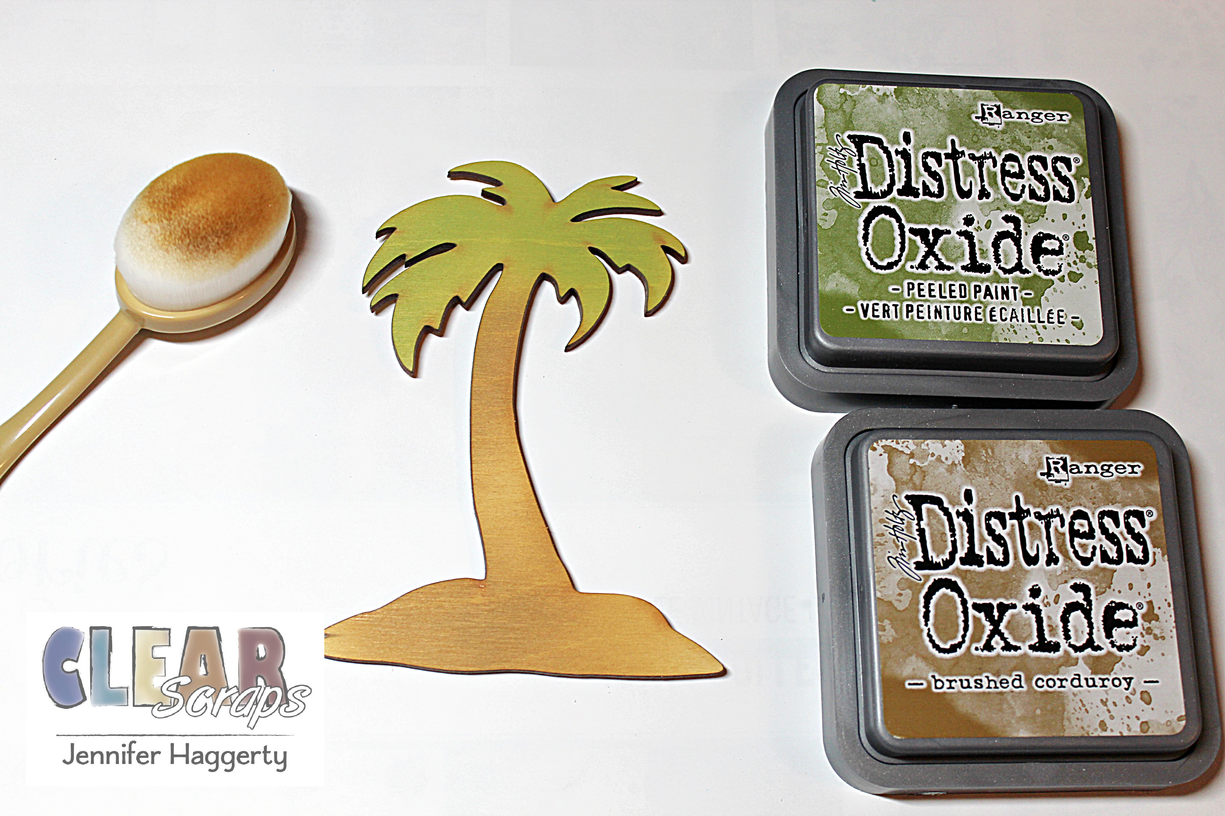 For my Palm Tree, I again used blending brushes with Distress Oxide Inks to color the trunk and fronds of the tree.