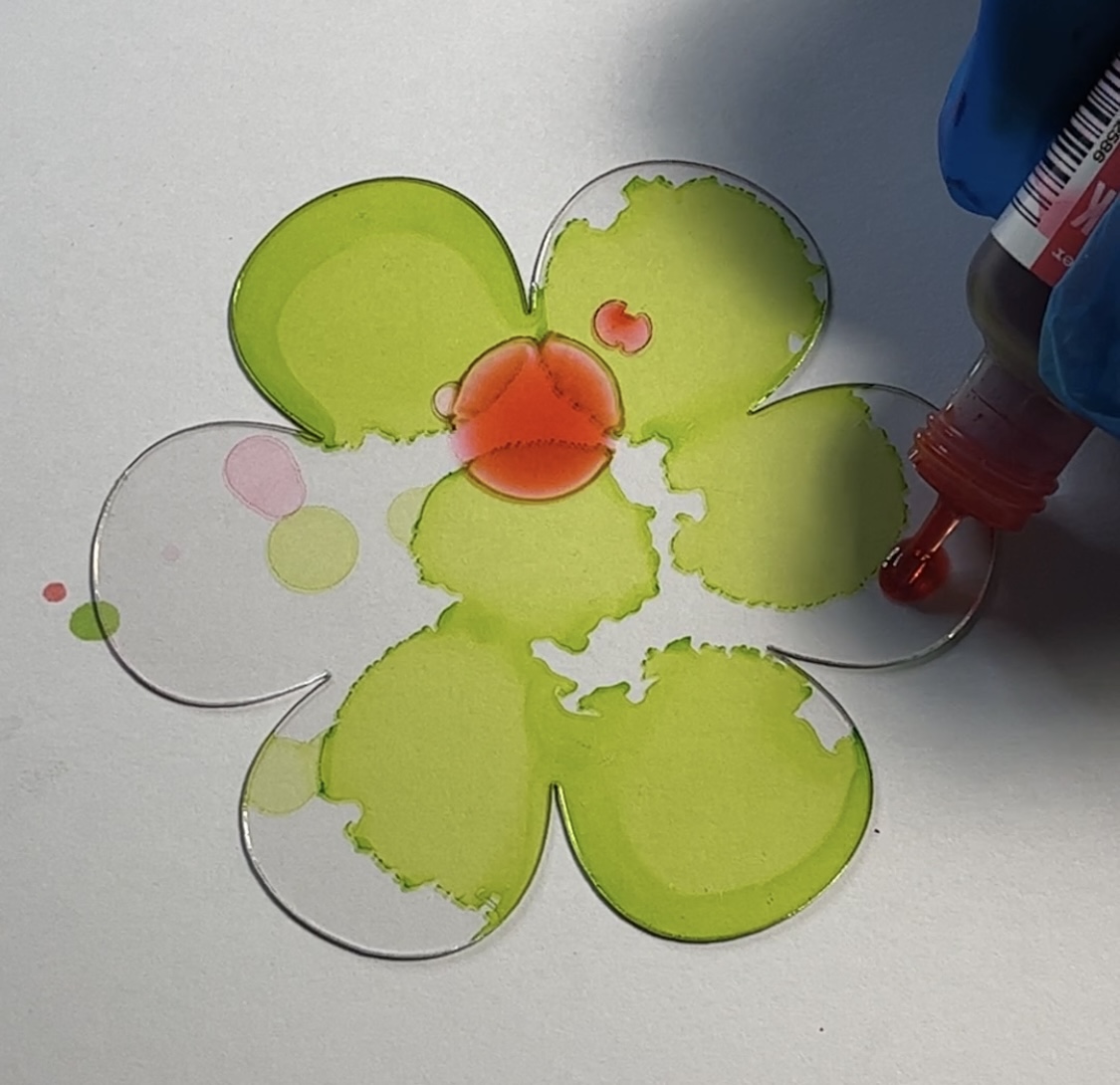 The great part about alcohol inks is that if you don't like the look on acrylic, you can use an alcohol blending solution and it "erases" what just happened! I did that a few times until I got my color mixes right.