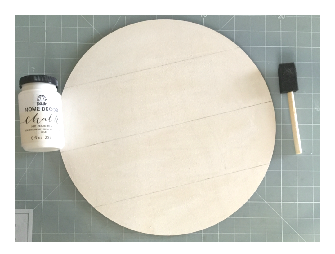To begin our project I took some chalk paint and a sponge brush and painted the front side of my round Shiplap Shape. Let dry.