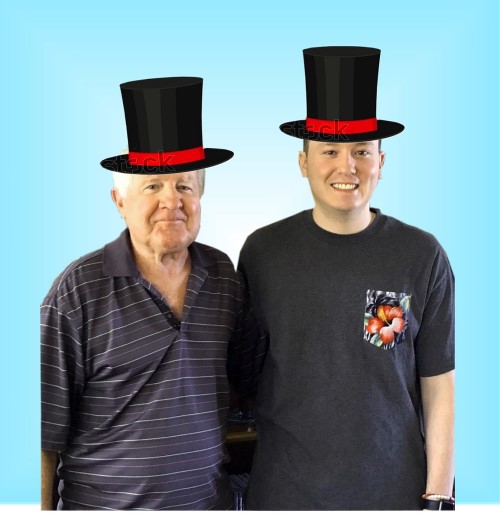 Some editing was done to the photo by removing the background and adding some clipart top hats.