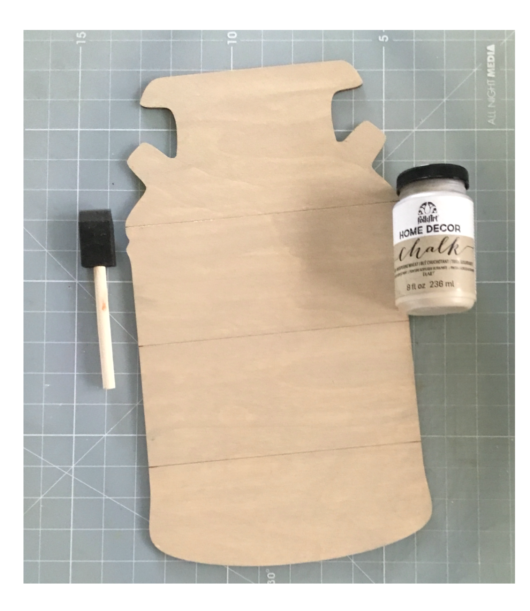 To begin I painted the surface of my Shiplap Milk can using Folk art Chalk paint Whispering Wheat and let this dry.