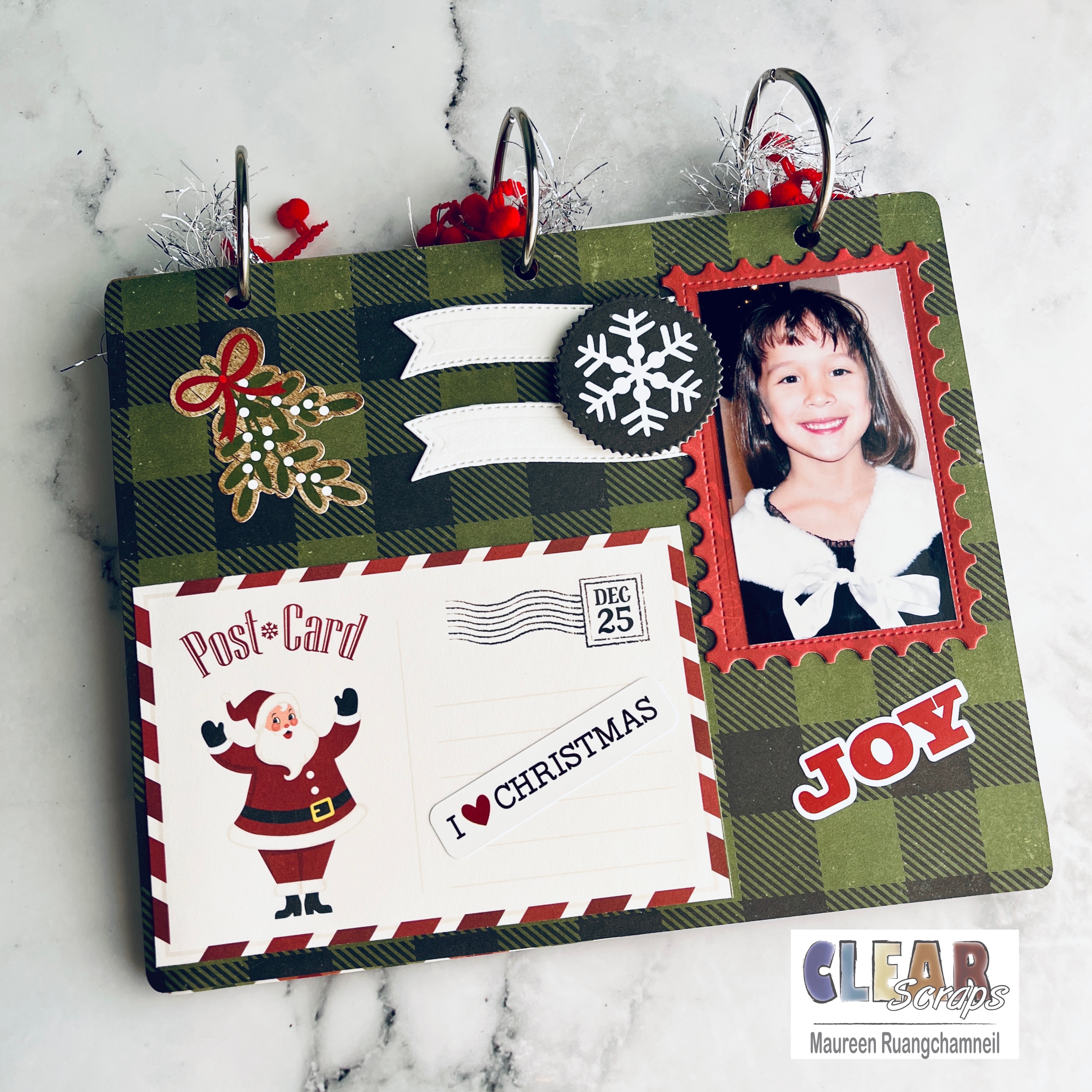 Did your family ever make it a tradition to write to Santa for Christmas? How about visiting him to take a photo? Hi, it's Maureen – and yes, I realize it's only Summer. But, there's never a better time to start working on those scrapbook albums then when you aren't busy with holiday activities. And I have a project that will help you get started!