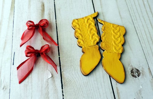 Before the hair was added it was embossed to give texture and then edged with some brown ink. Every patriotic gnome needs a red bow.