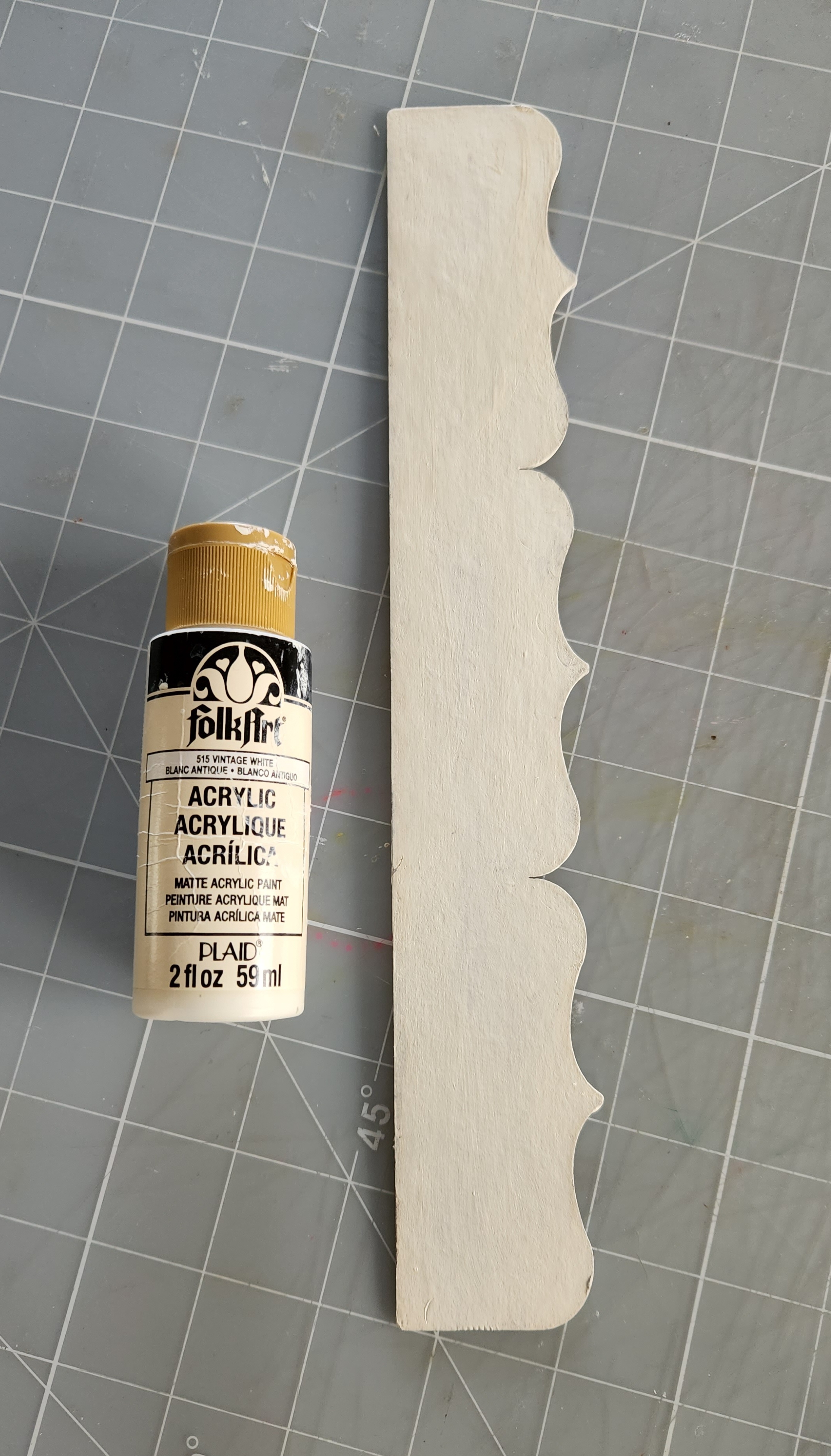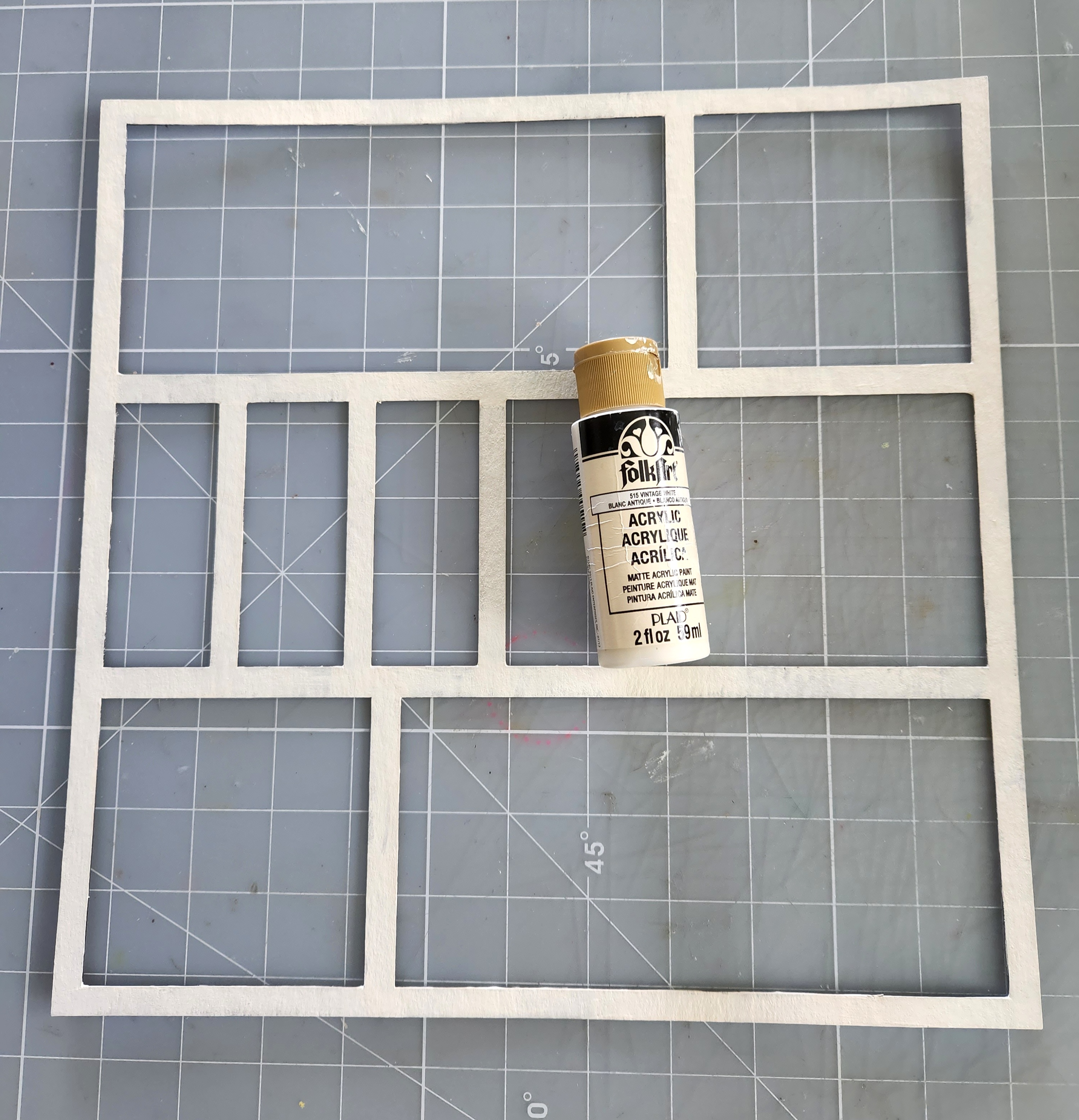 To begin our project, I applied some creamy acrylic paint to the front shaker frame and my chipboard Deco border. I prefer to apply 2 coats of paint and after it's fully dried, I inked the edges using Distress Ink.