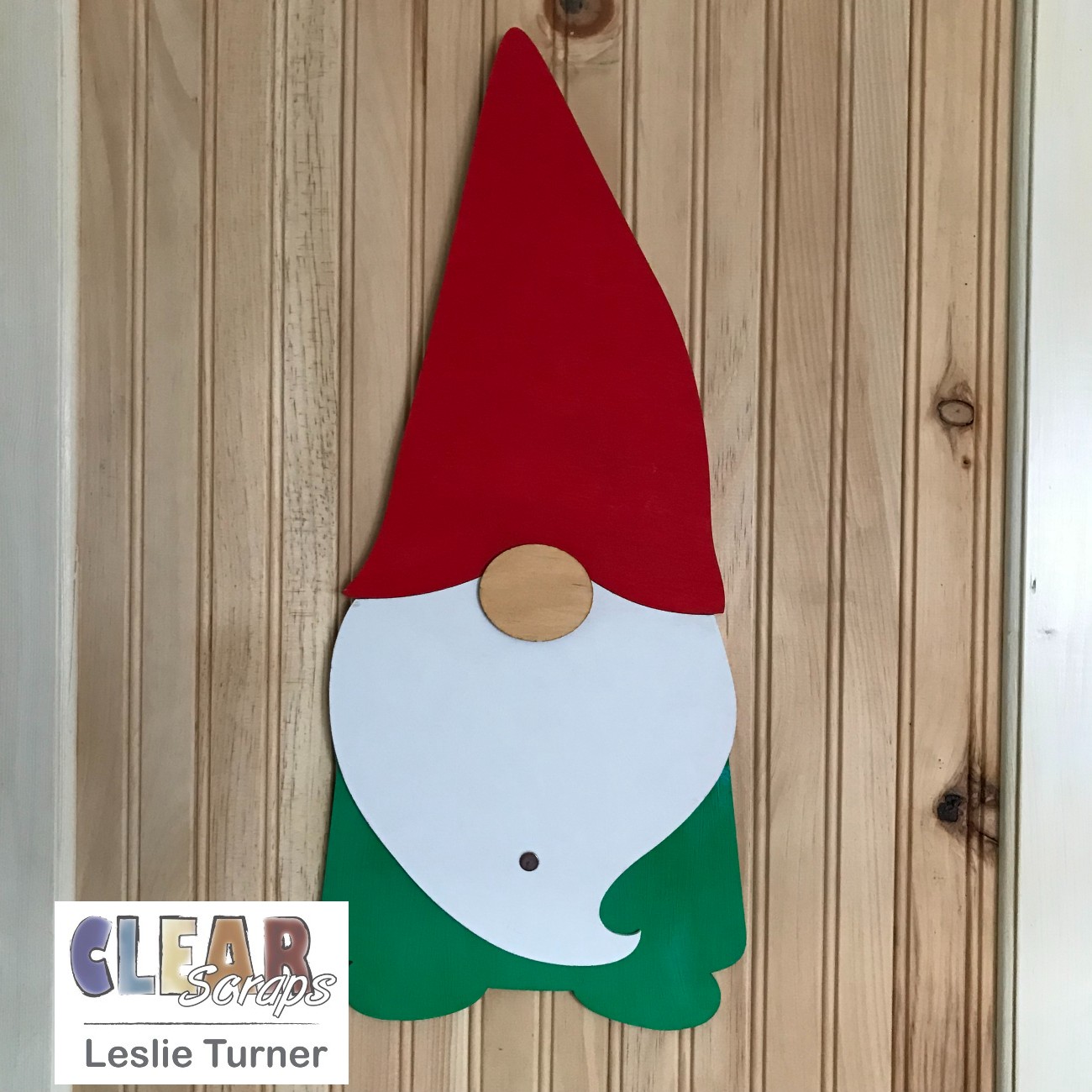 Hey everybody! Leslie here, sharing a super cool gnome that's definitely a 'tall drink of water' as my mom would say – standing over 20" tall! He comes with a stand but I fashioned him to hang on a front door to hold seasonal add-on elements all year long! You'll get a peek of only one of those add-ons in this post but you'll see all 12 of them in my post in just a few days!