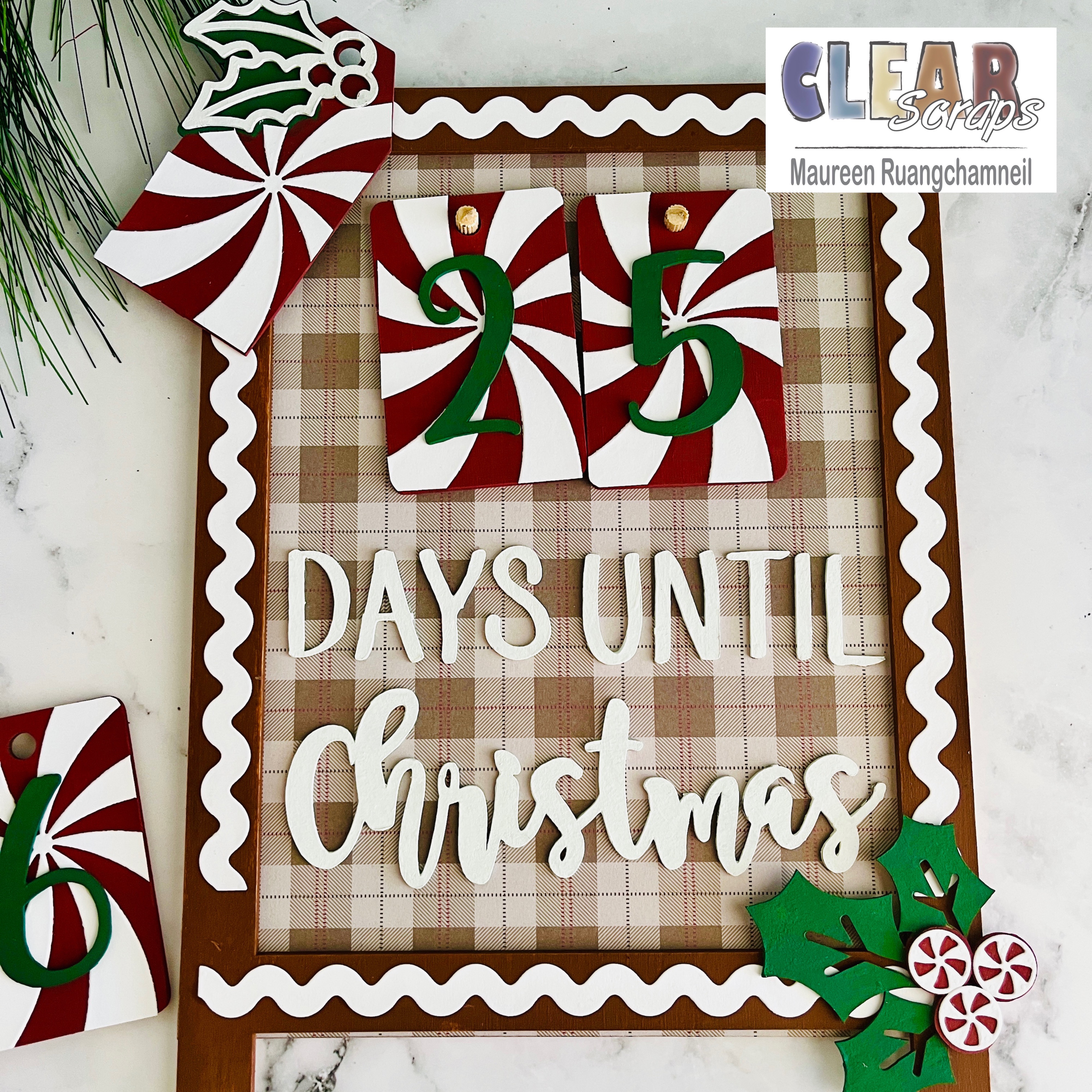 Yes, I'm working on Christmas stuff, but this kit will allow me to countdown from 99 if I want! And, oh by the way…that's not far from now. Ha! Oh my goodness, this kit is so cute, and the possibilities with this project were endless…I admit, it took me a few days to decide what colors I wanted to do. After much debate, I decided a peppermint swirl and gingerbread plaid was the way to go.