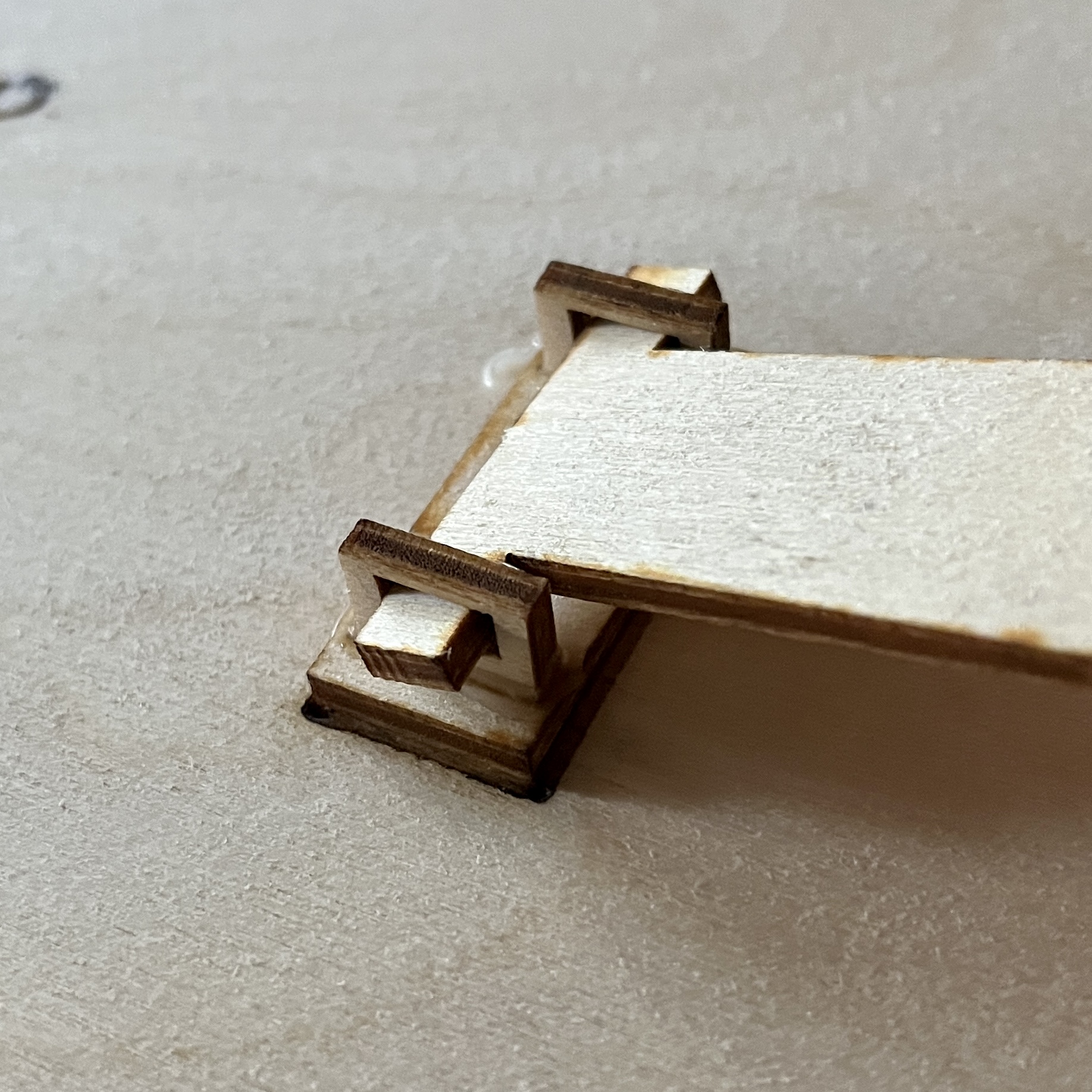 Next, I used a gingerbread brown and burgundy card stock paper to back the board. To cut it to the right shape, trace it on the back with pencil. Also make sure to trace the holes for the pegs. I used a small pin tool to poke them out before I glued to the board. Then glue the top panel over it.