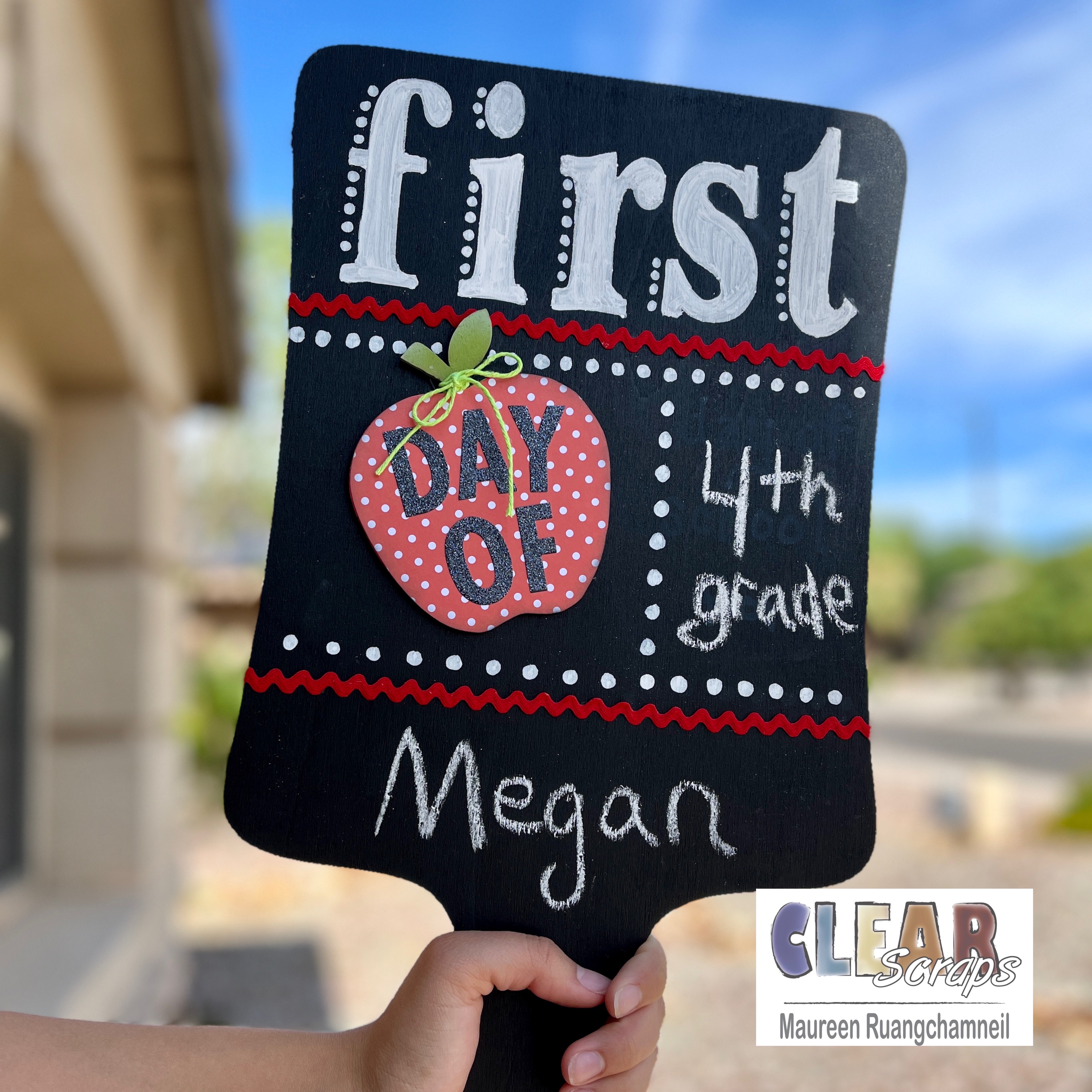 My students are actually out of school now…and I sometimes miss those first day of school moments. But this board will make a fine gift for some other parent. How about you? Will you give this project a try? Feel free to save this project, and come find us out on Pinterest at Clear Scraps Crafting Inspiration Ideas. See you next time, everyone!