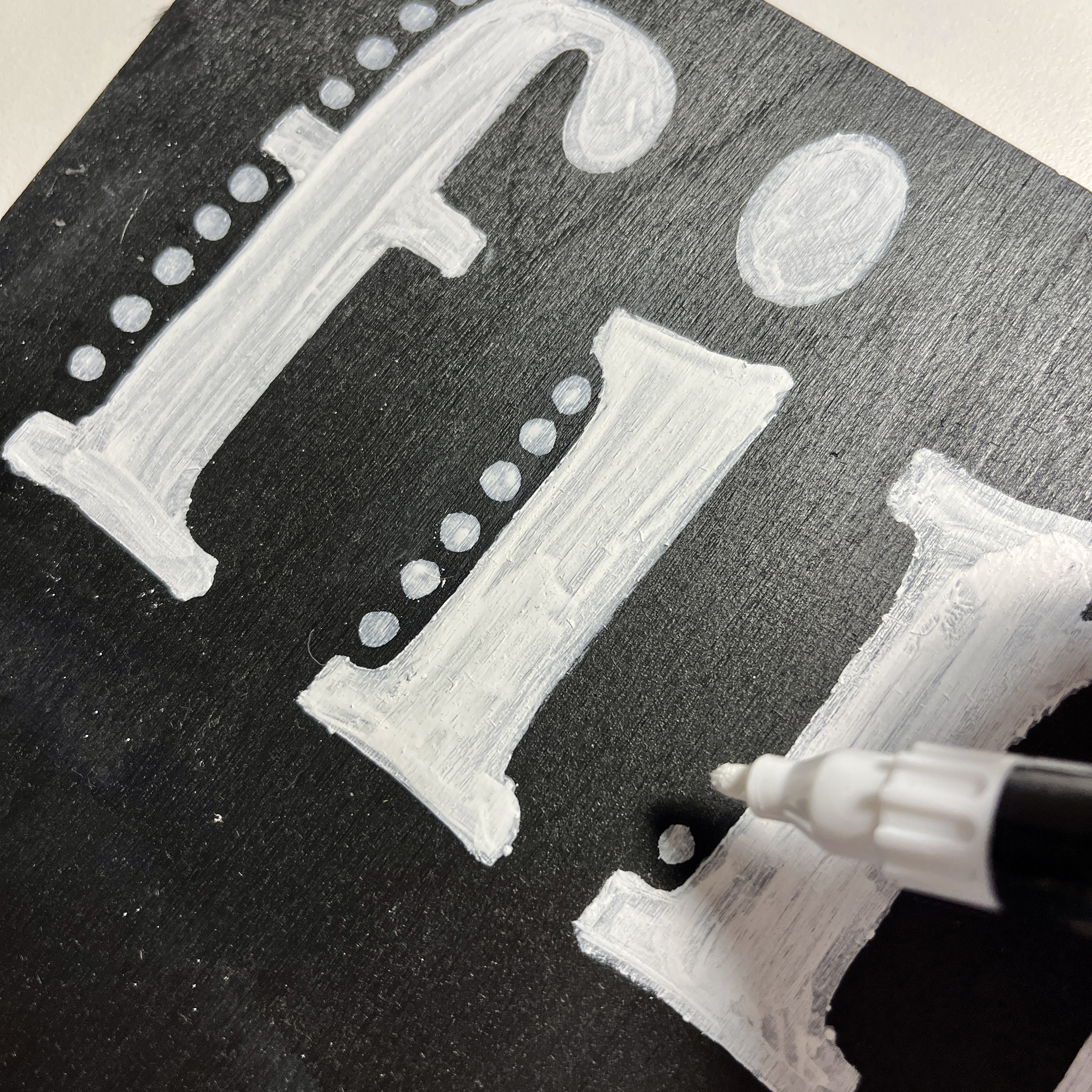 I'm also adding dots to the edges of the letter with a fine tip chalk pen – there are so many ways to decorate these letters and this will match the overall theme nicely.