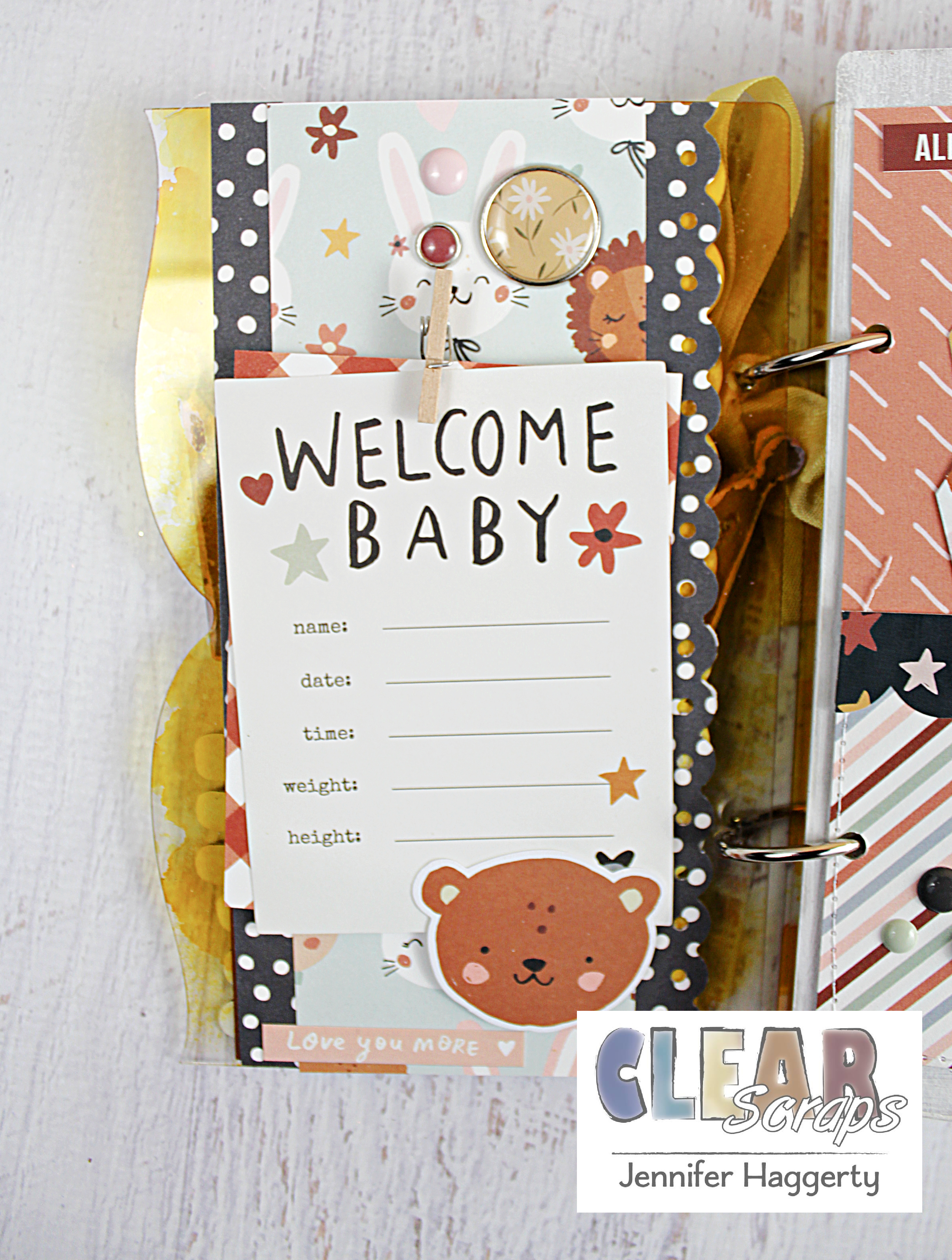 Hello friends! Its Jennifer back on the blog today to share a fun baby themed mini album I created using a few Clear Scraps goodies! And I'm going to show you the easy techniques I used so you can recreate them on whichever project you select!