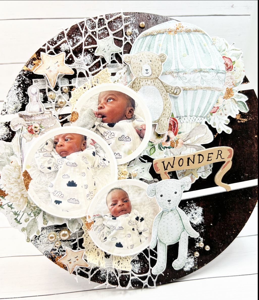I used Mintay's paper collection Tiny Miracles for the surrounding die cuts. Those were all fussy cut out by hand. Cause I love my Buppa 🙂