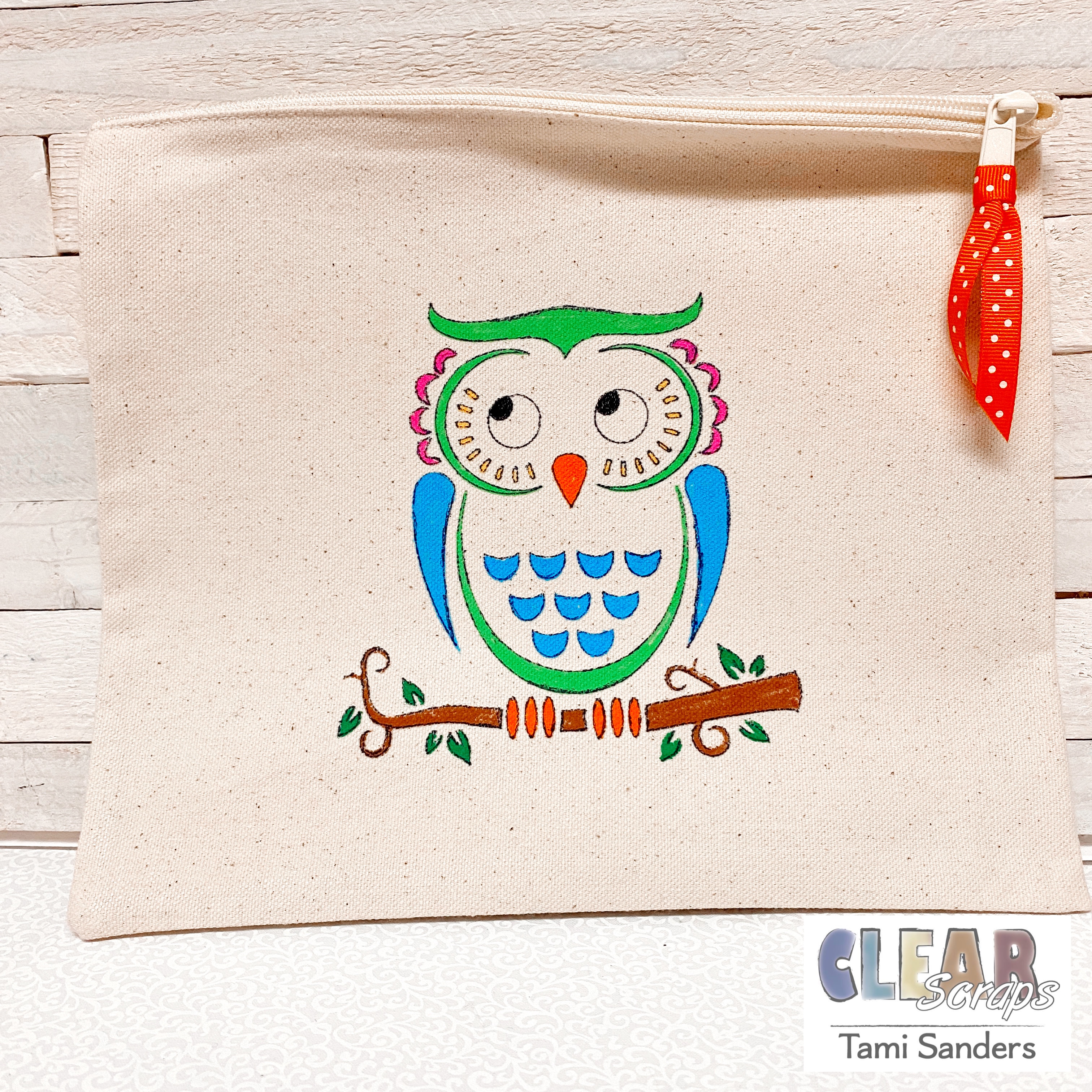 I like owls and Clear Scraps has the most adorable little Owl Stencil, I used the 6" size for my bag…