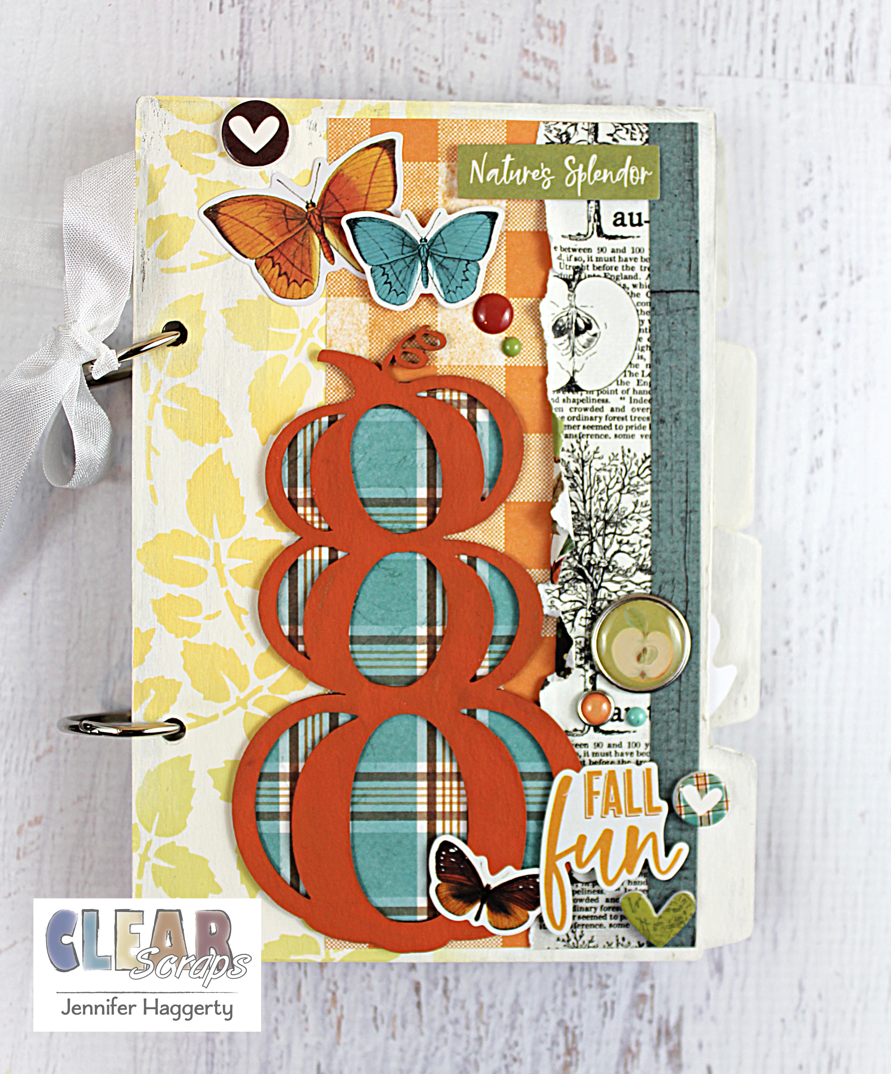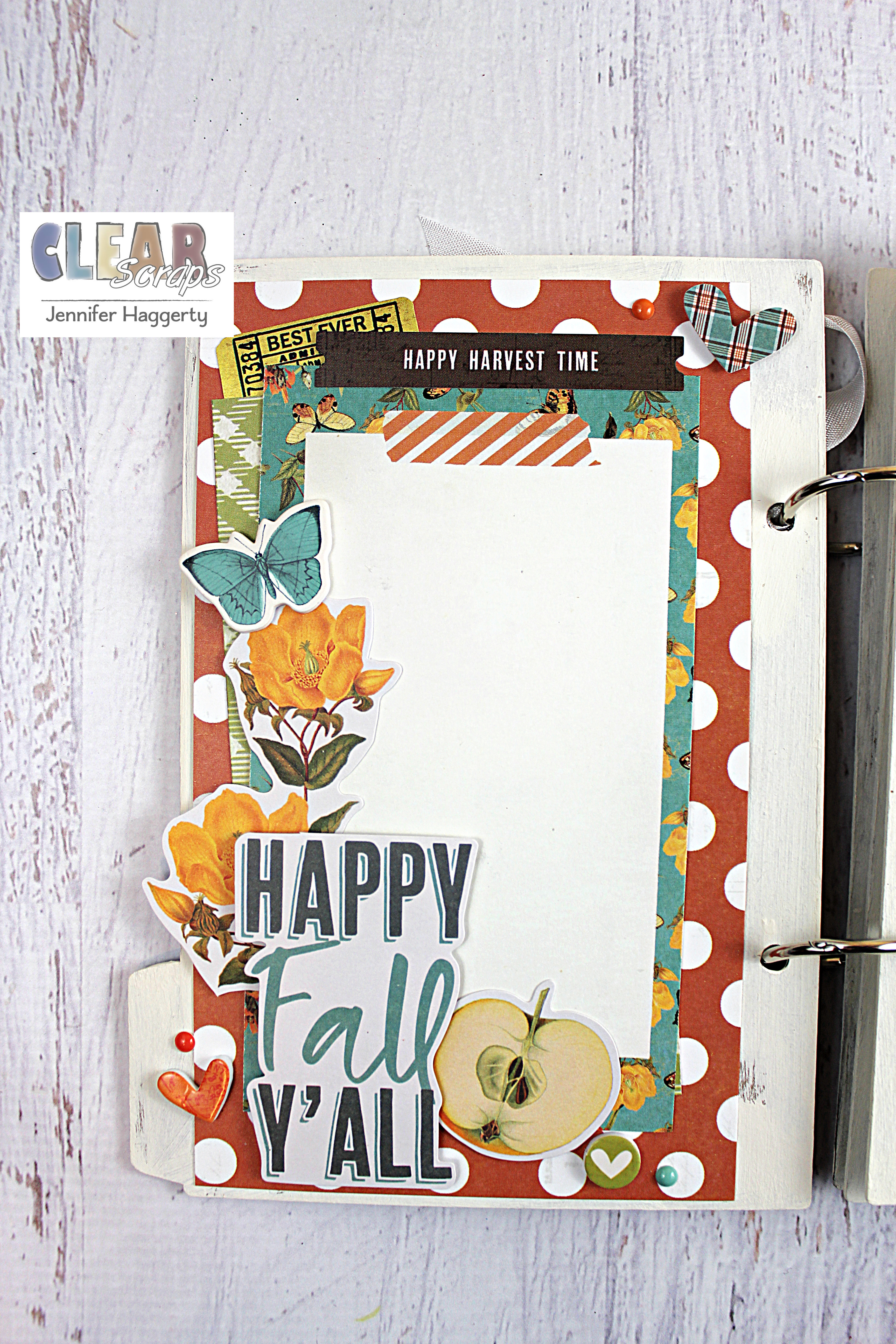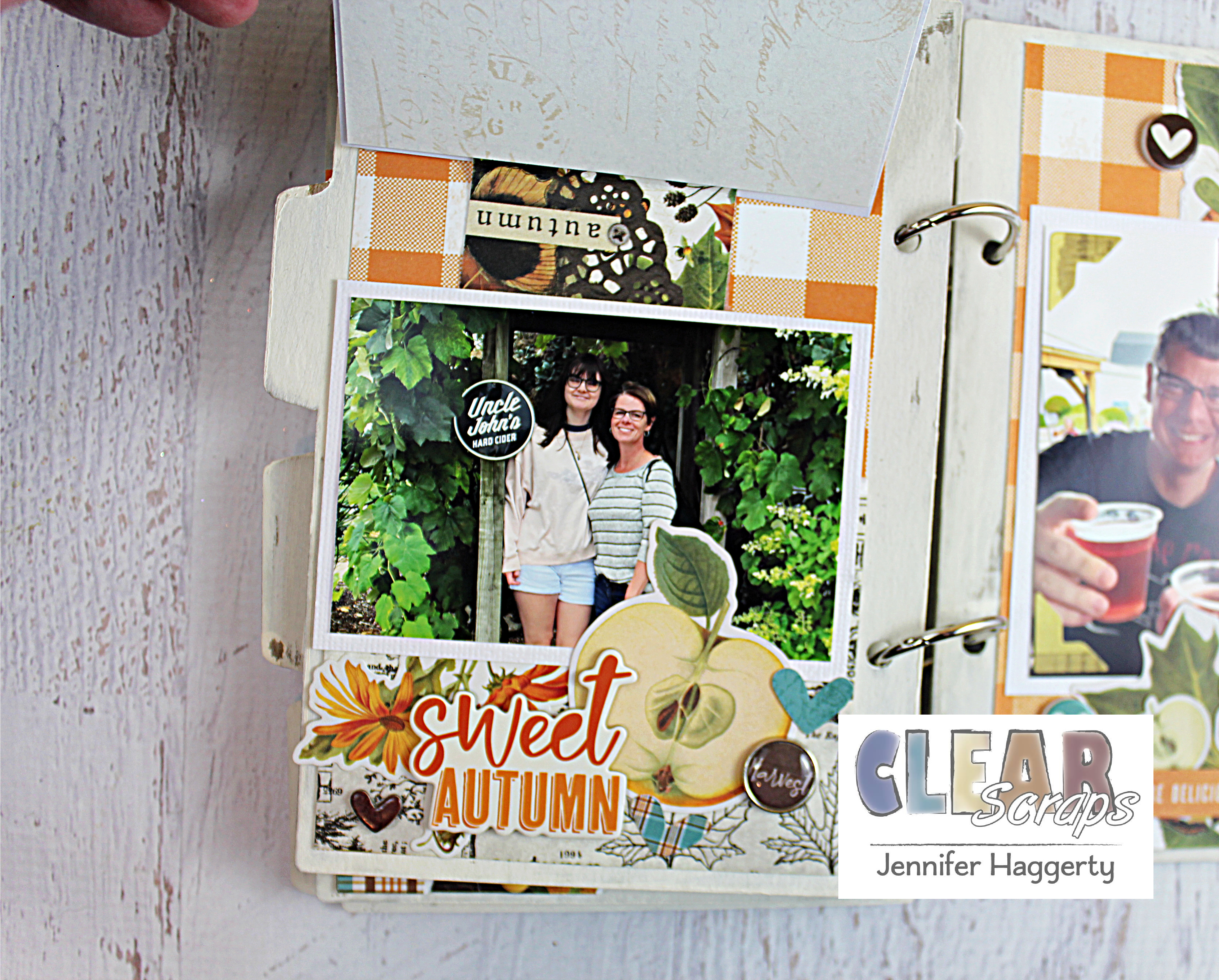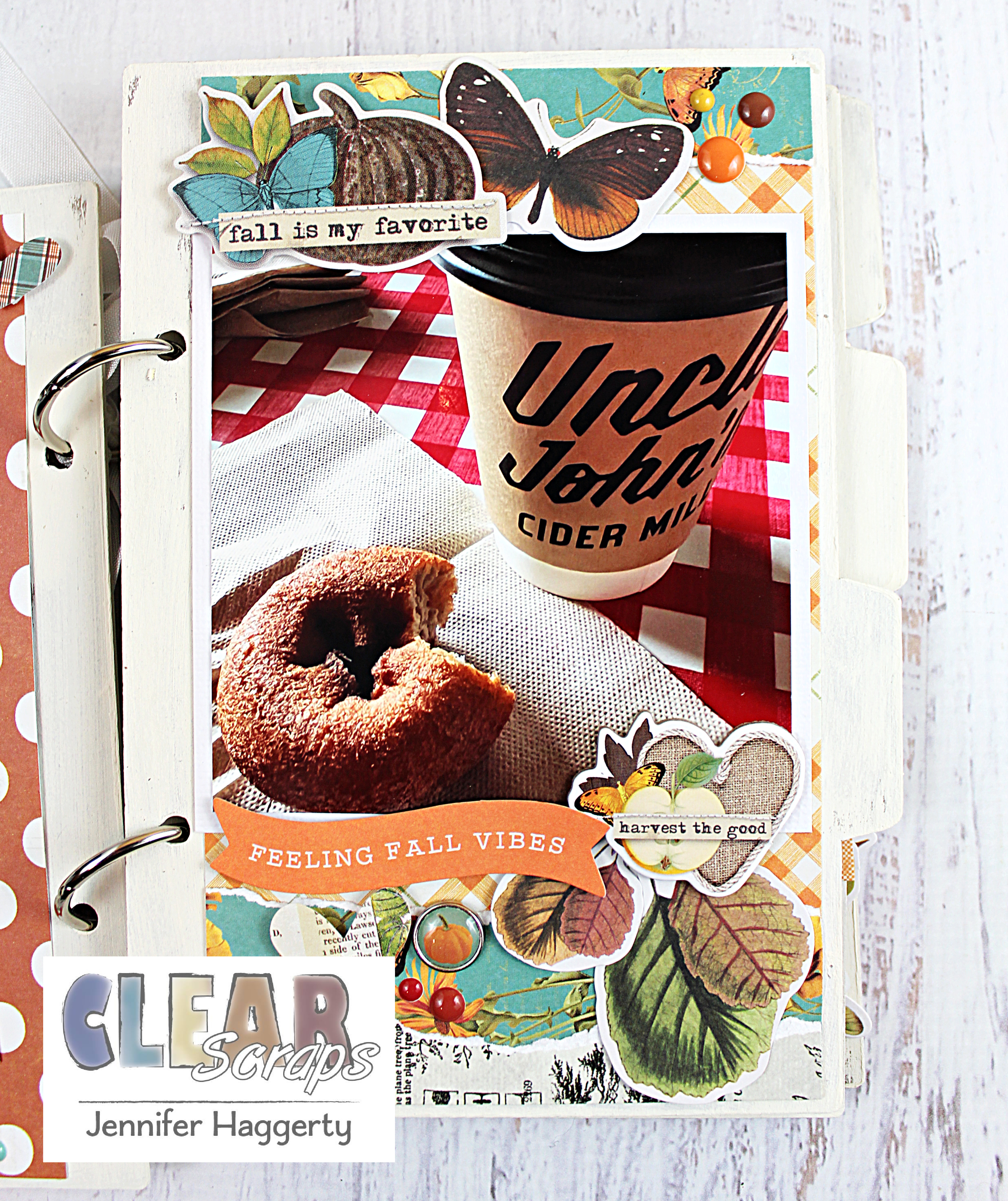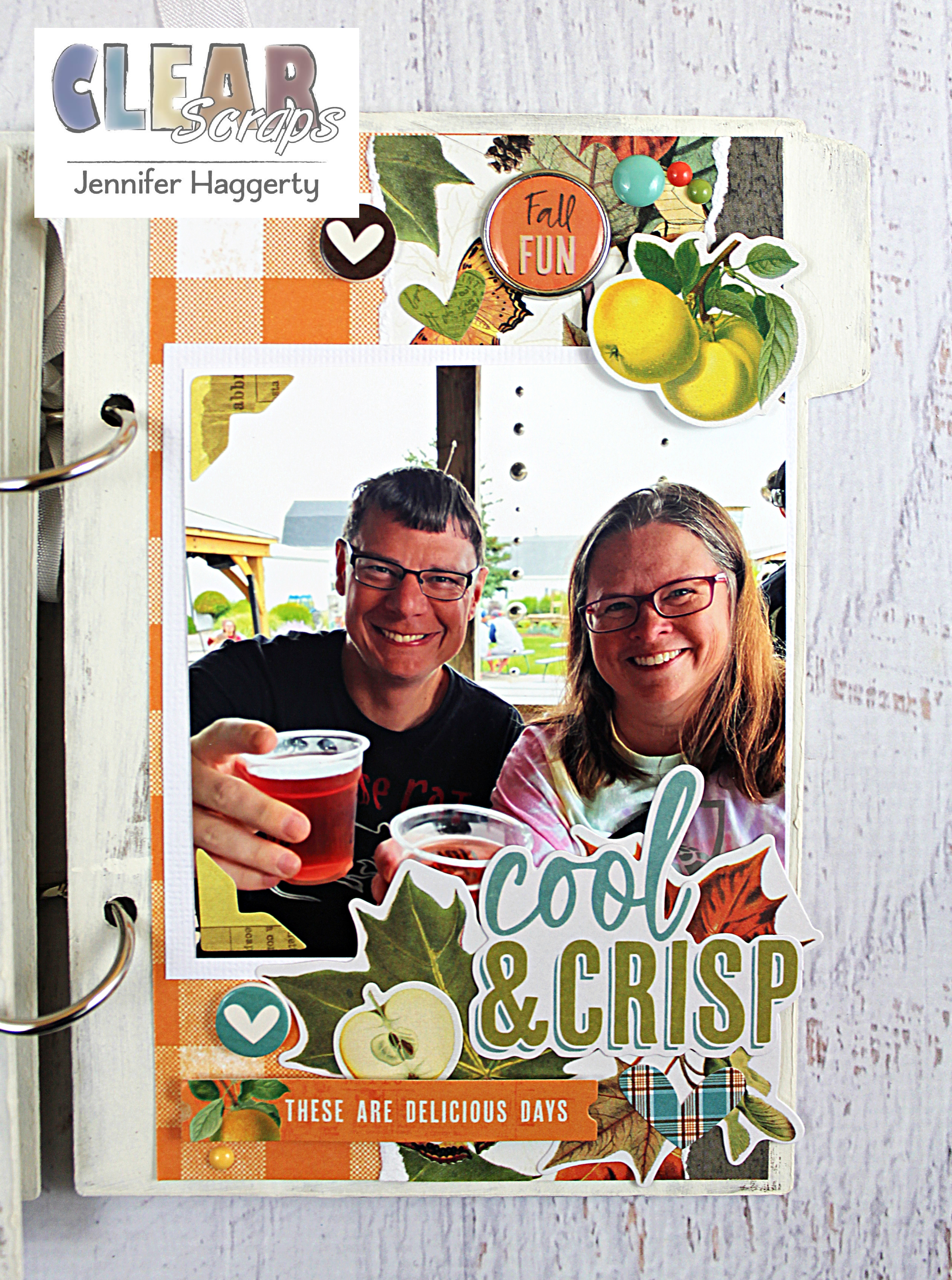 Hi friends! It's Jennifer here on the blog today to share a fall mini album I created using some new Clear Scraps products! Fall is one of my favorite times of year with the changing leaves and fun activities! I recently visited my brother and SIL in Michigan where we went to a local farm for donuts and hot cider!