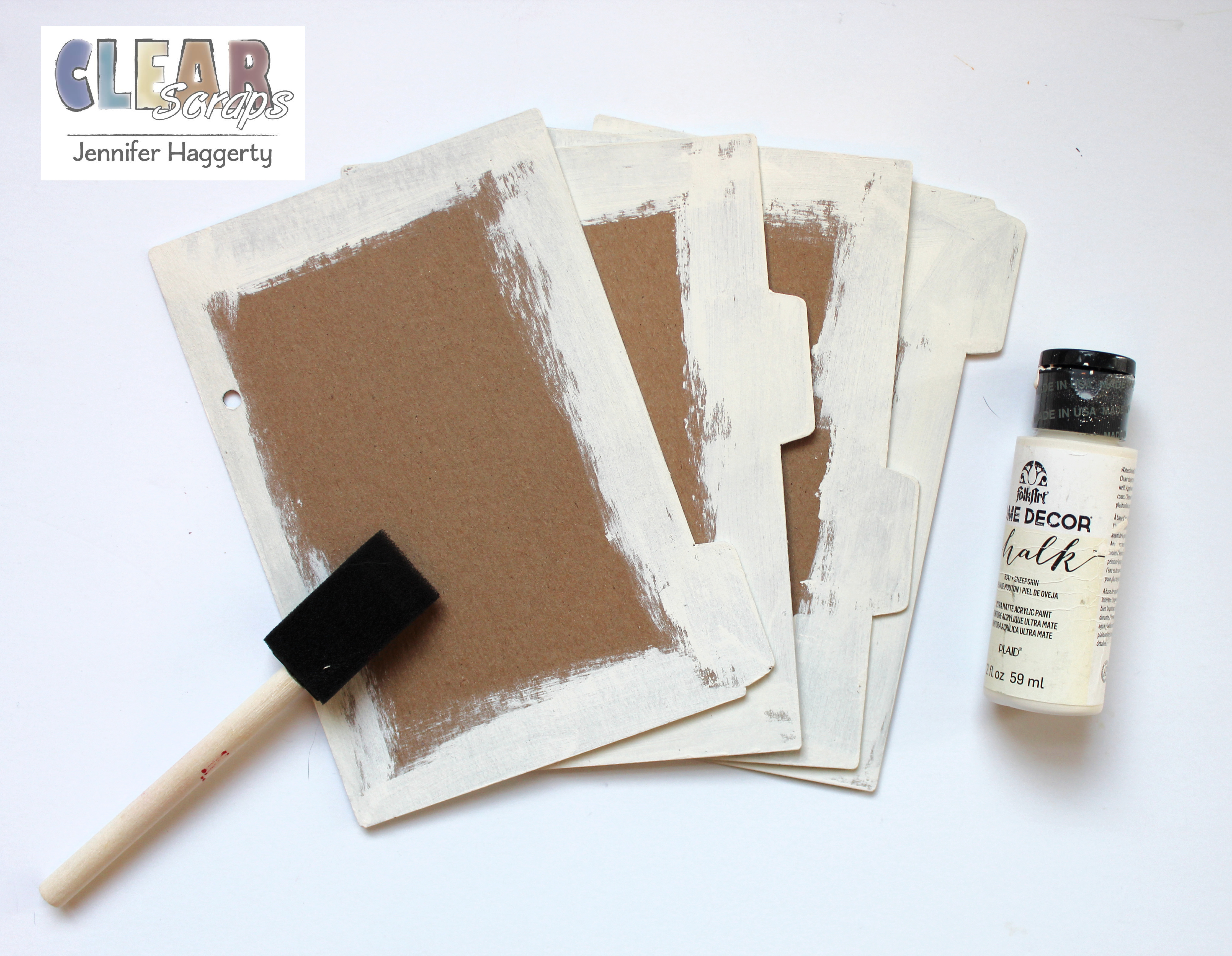 I began with the 5×7 Chipboard Tab Album and painted the outside edges with off-white chalk paint. You can use any type of paint however I prefer chalk paint as it dries quickly and adheres nicely to the chipboard.