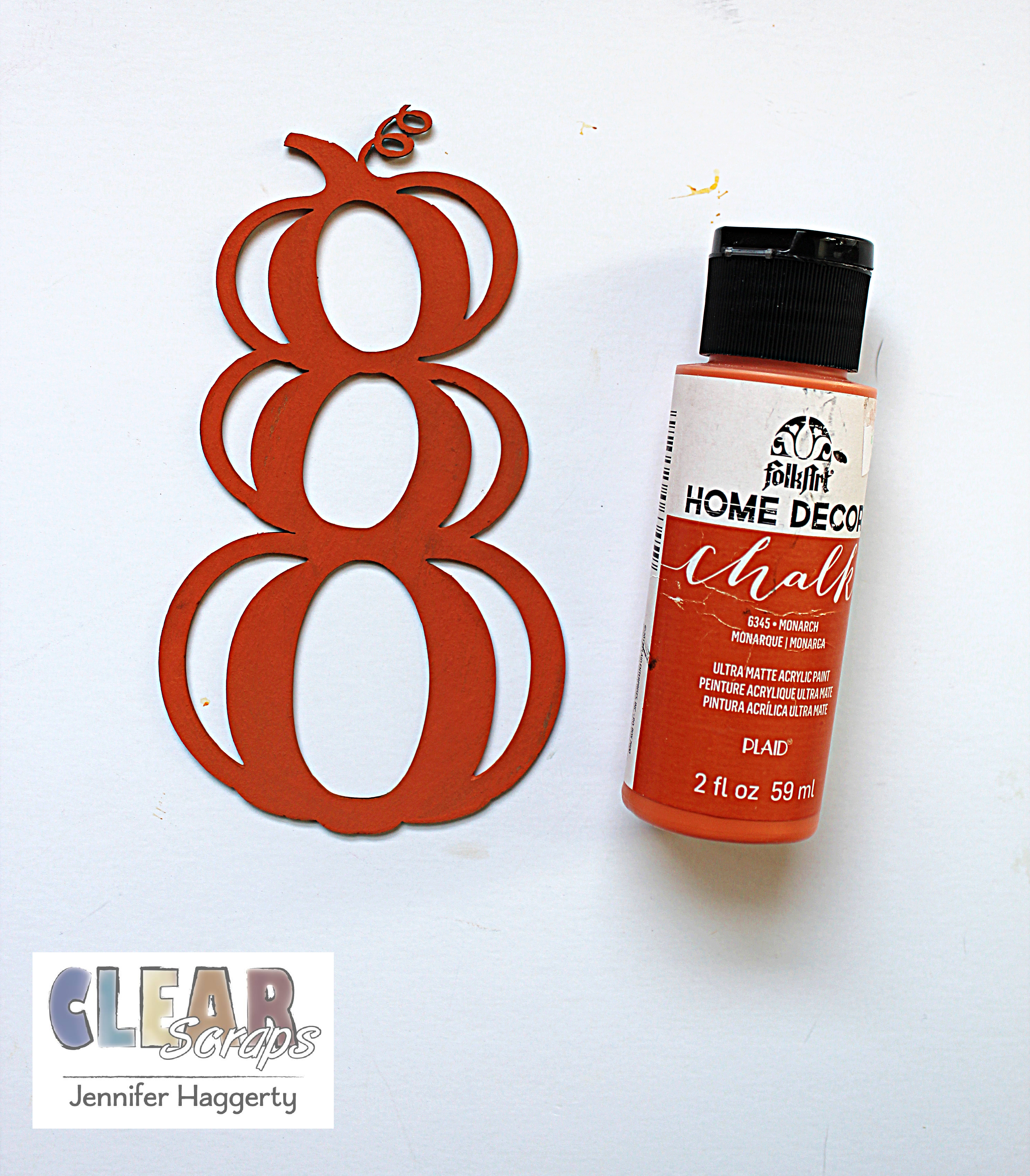 Again using chalk paint (this time in a nice orange color) I painted the Stacked Pumpkins Chipboard Embellishment Shapes. Once dry, I backed the openings with patterned paper and cut away excess with my scissors.