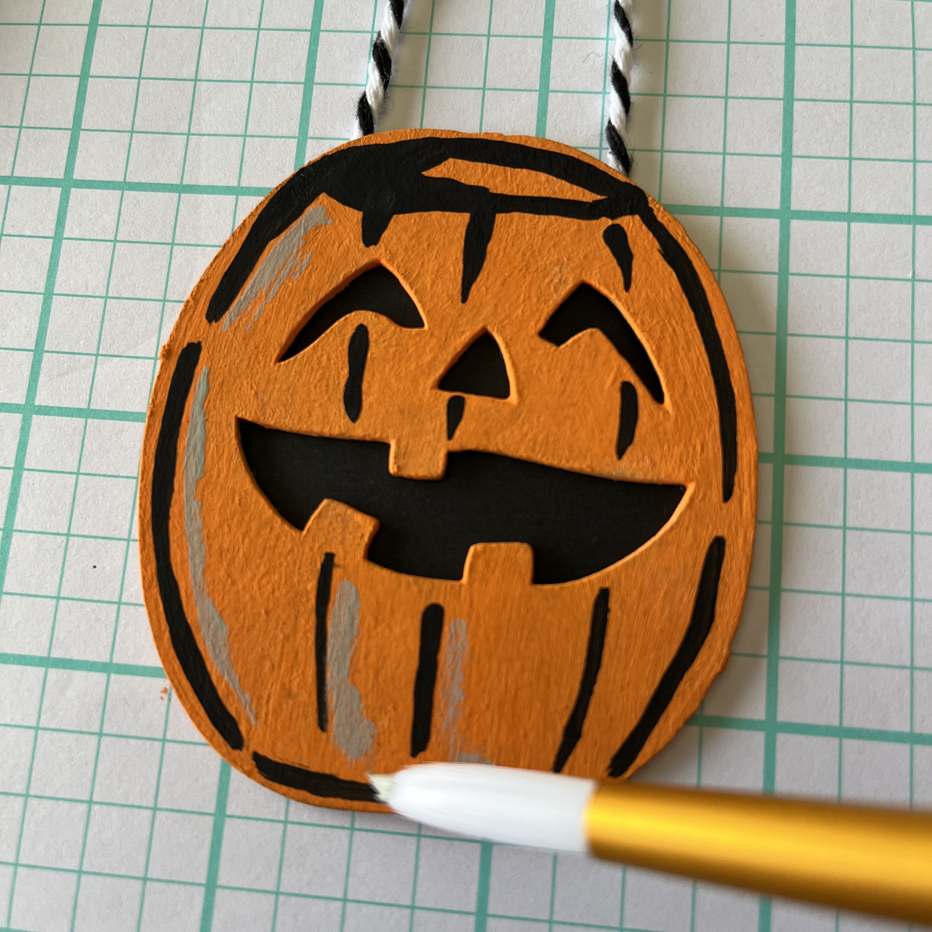 You will do the same with the jack o'lantern – and if you don't trust yourself with a paintbrush, you can use a permanent black marker instead. If you don't like how something looks, don't worry! Paint over the shape and start again.
