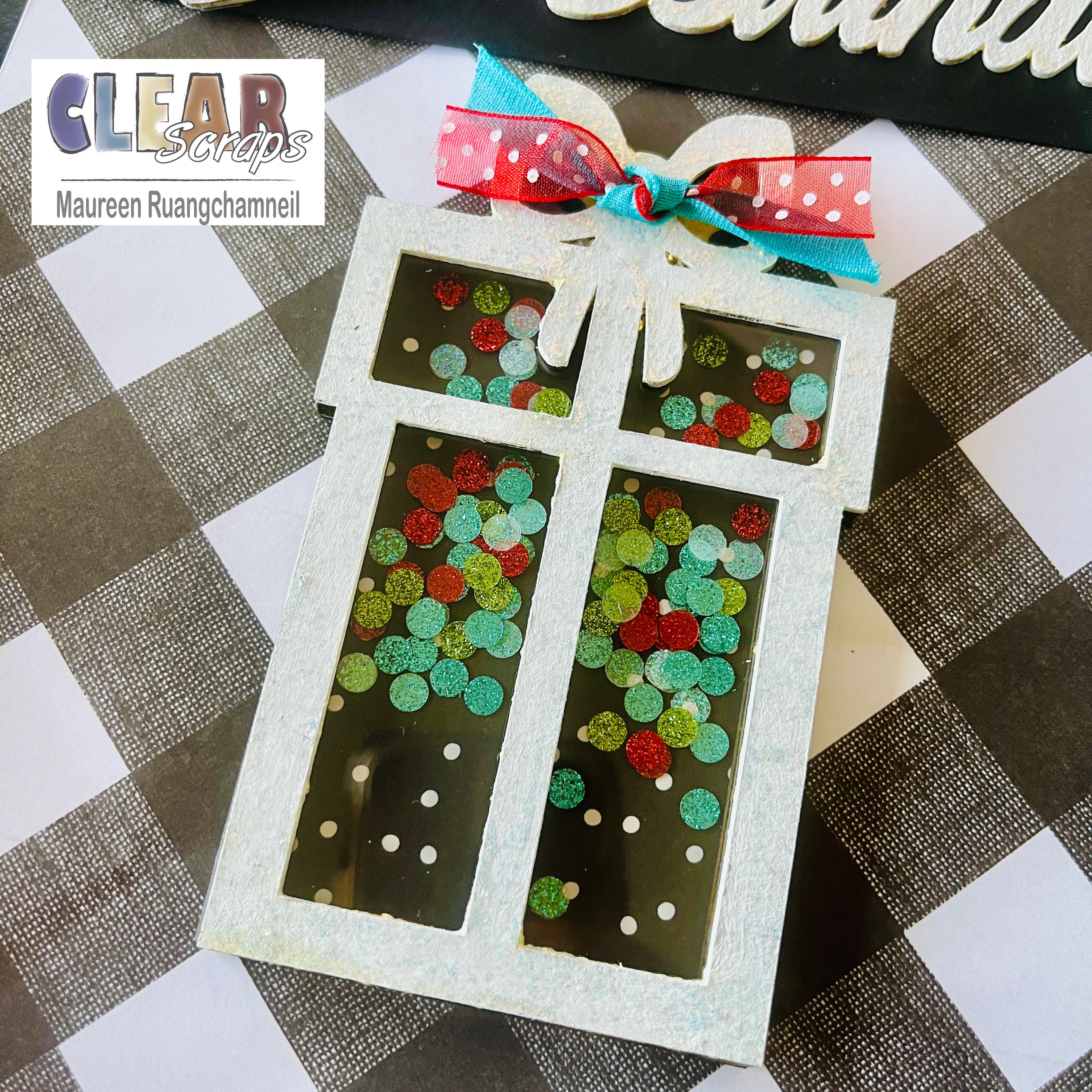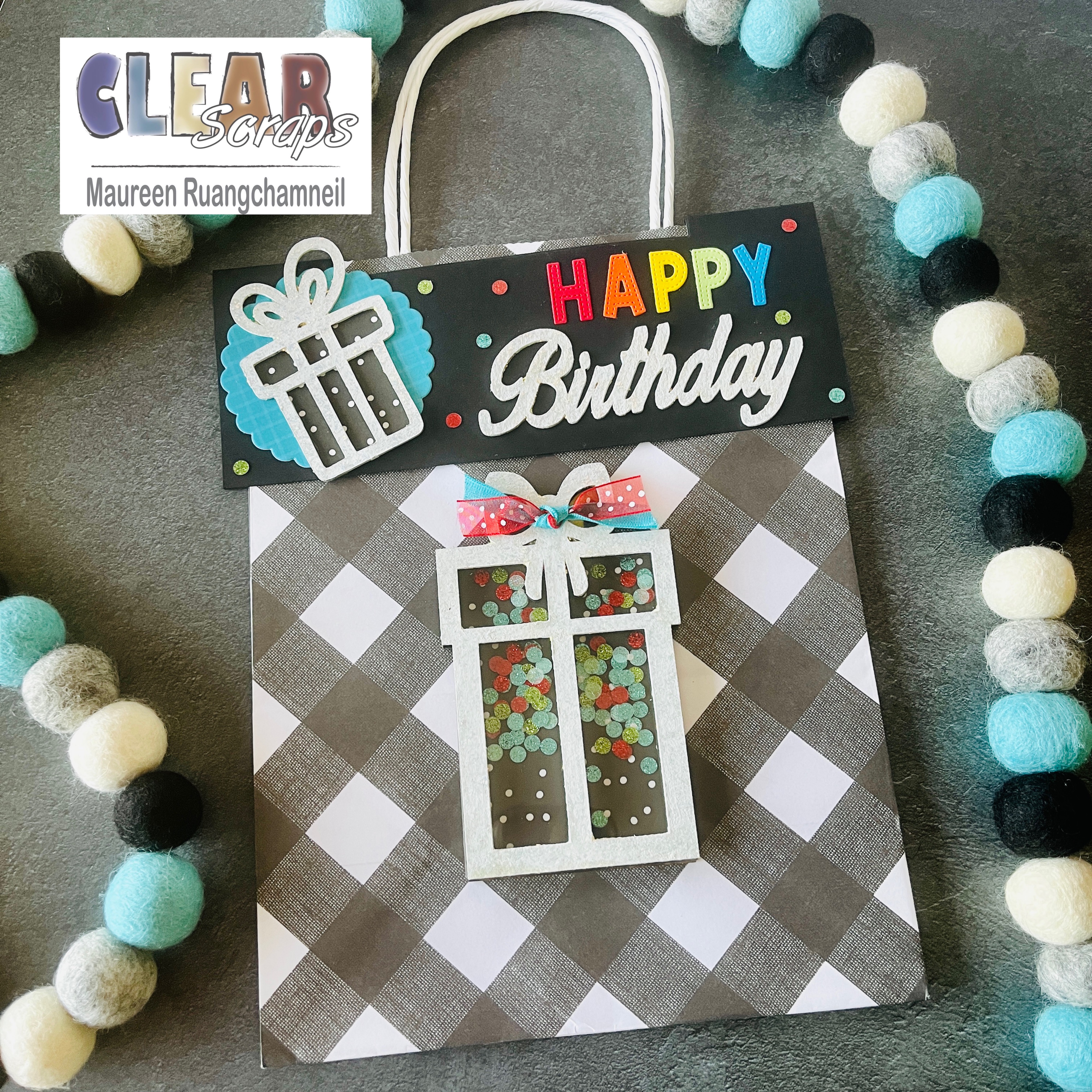 Hi, it's Maureen today – and I have a simple project idea for you that works on any handled gift bag. All you need is a gift bag, some card stock papers…and the great embellishments from Clear Scraps!