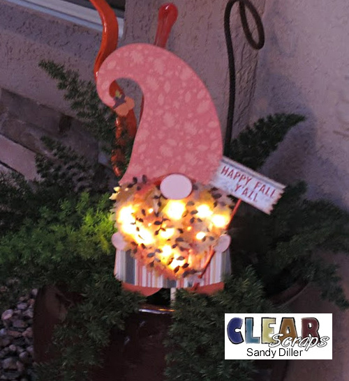 Although it is still blazin' hot here in Arizona, I know it's beginning to cool off in other places. That made me think about a cute little garden gnome. While I love any kind of gnome this one is especially cute because he also lights up.