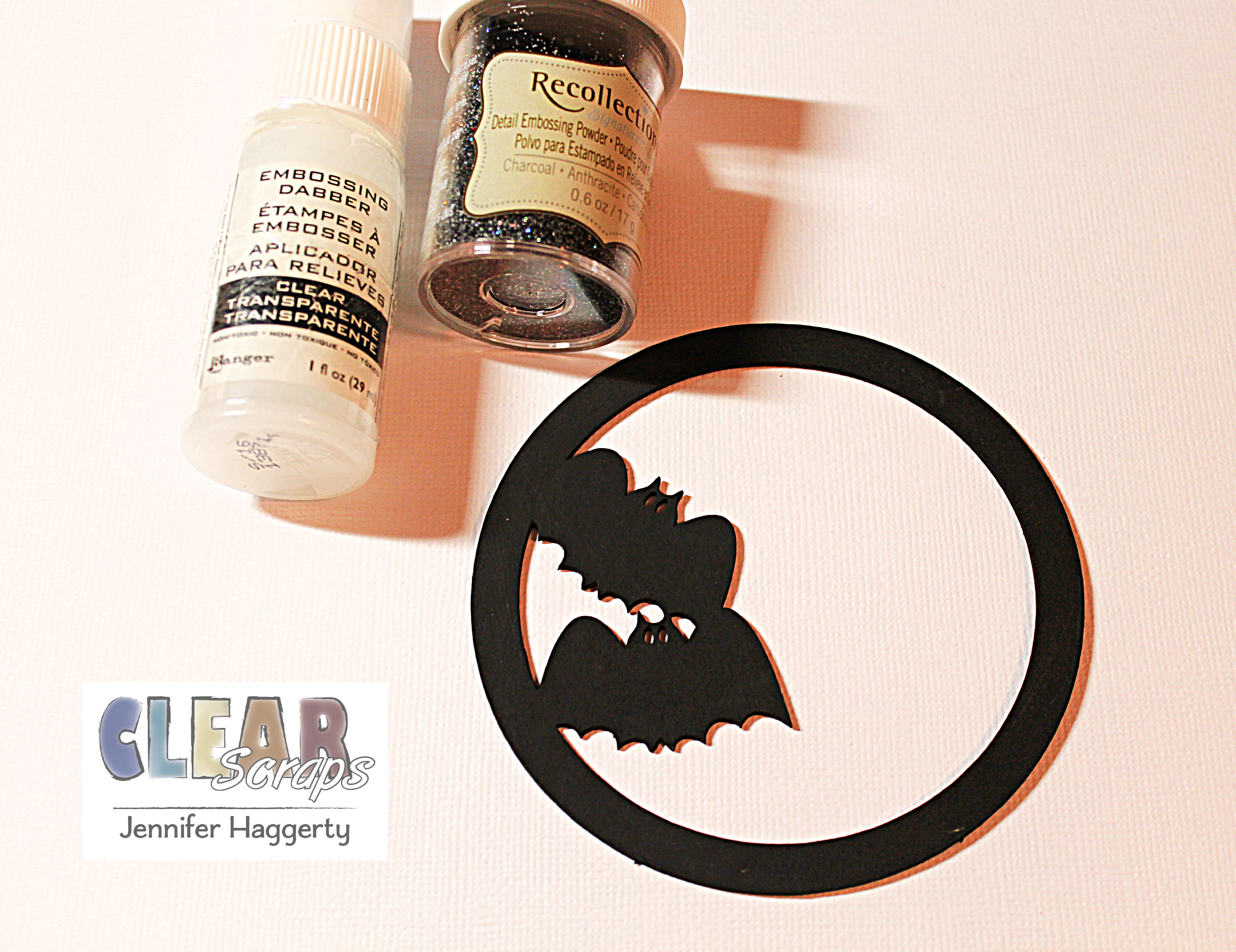 I then added embossing ink and powder to the bats only on the top frame. I shook off the excess powder and set with my heat tool.