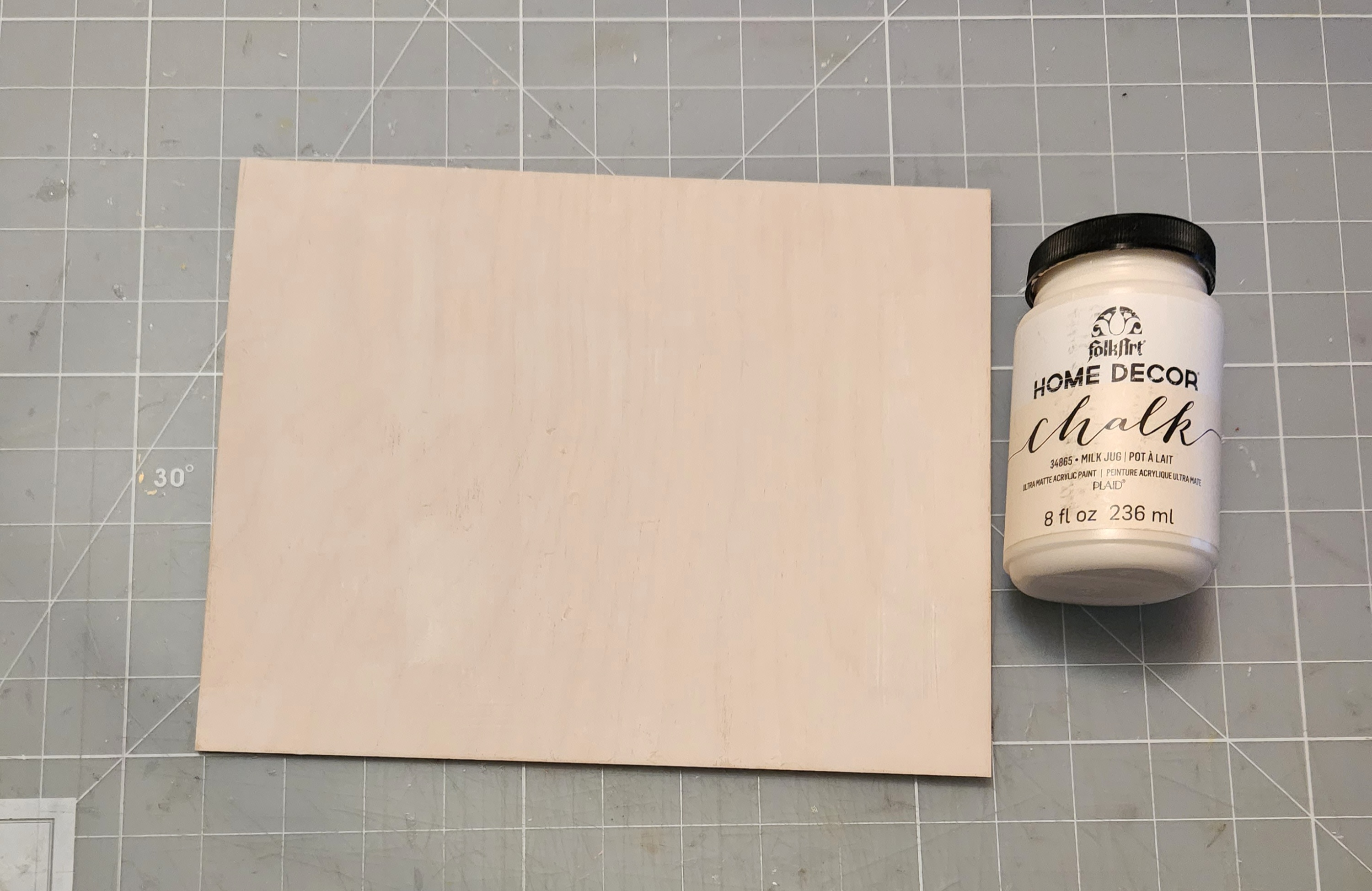 Let's begin by painting the wood rectangle shape using some Chalk Paint "Milk Jug". Let dry.