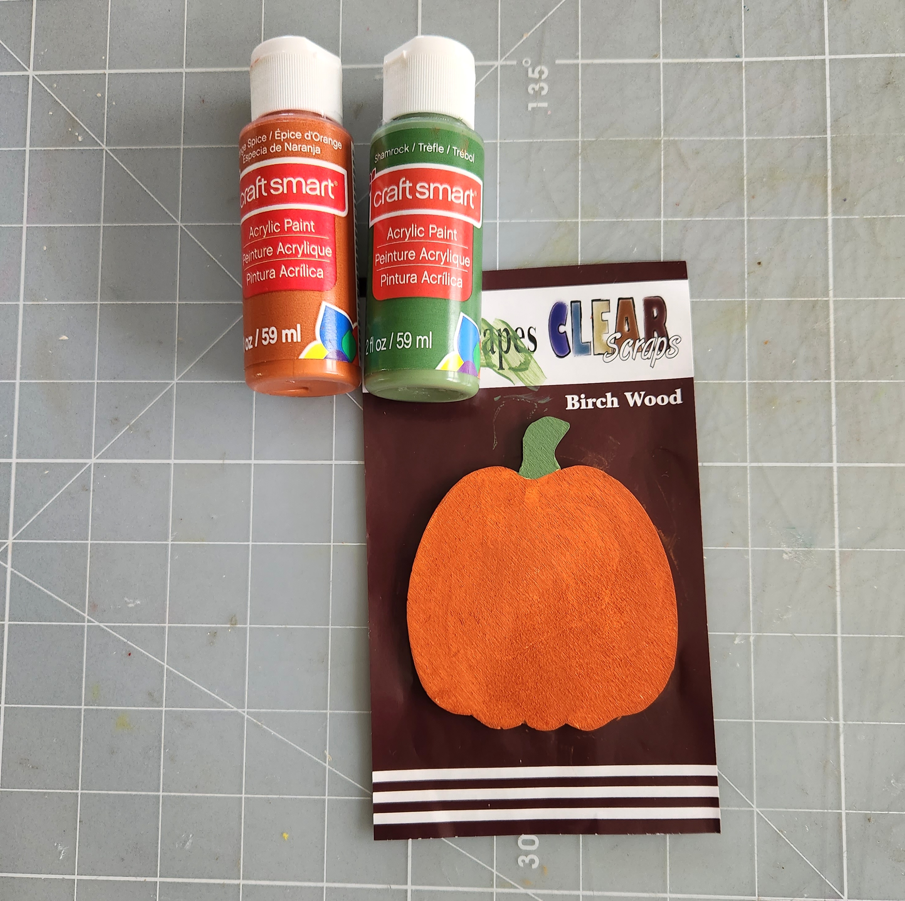 For my pumpkin shape, I applied some acrylic dark green paint to the stem. And Dark orange acrylic paint on my pumpkin. Let dry. After your orange paint is dry, I brushed some Spectrum Noir Sparkle paint "Candlelight" over the top of my pumpkin. It adds a nice glittery accent!