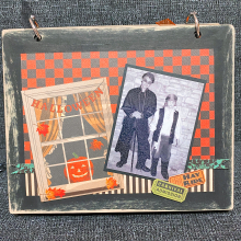 Once all the pages were finished, I used 1" book rings to bind the album and tied orange and black ribbons on them.