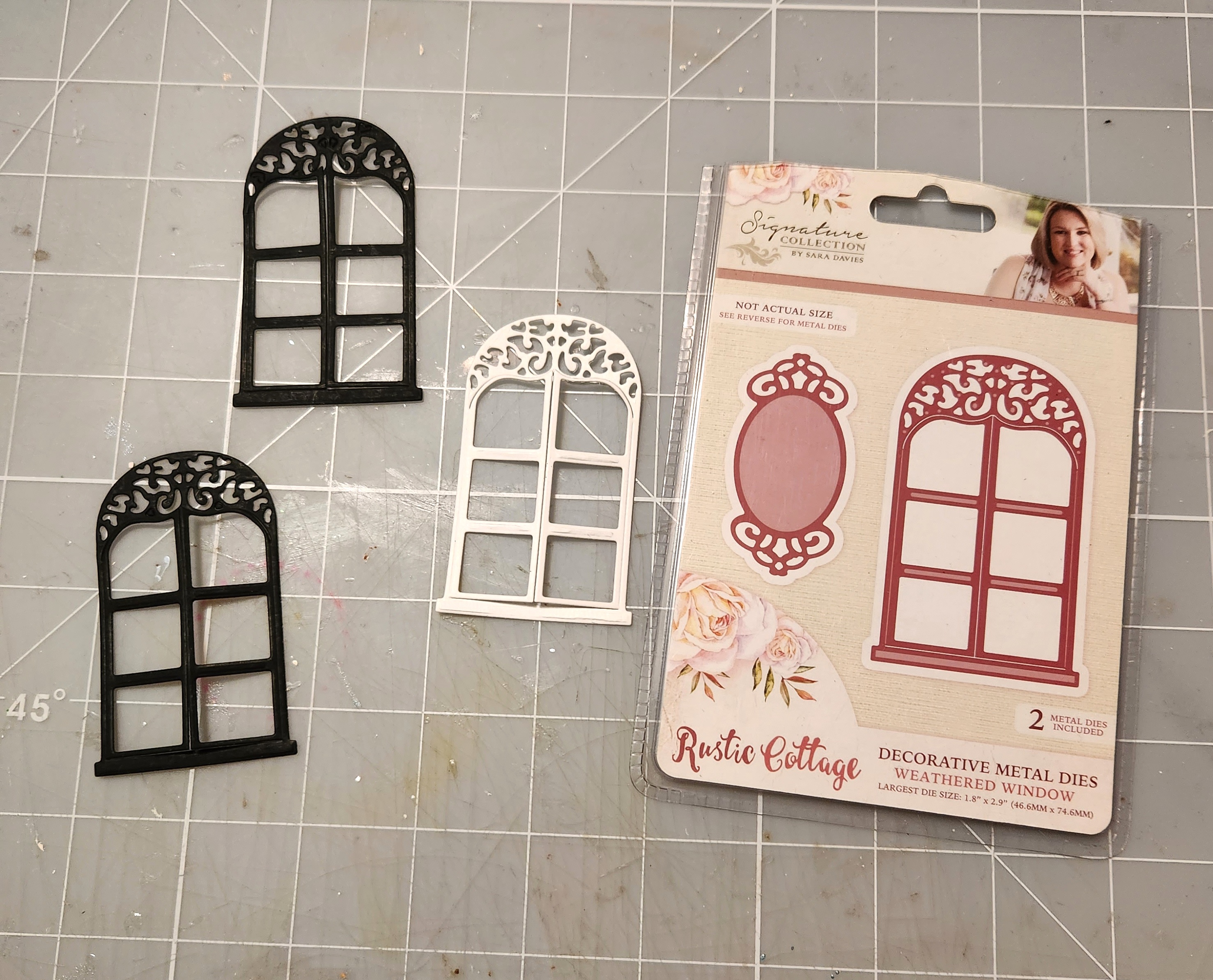 Using a window diecut from my stash, I diecut 3 windows using black and white cardstock.