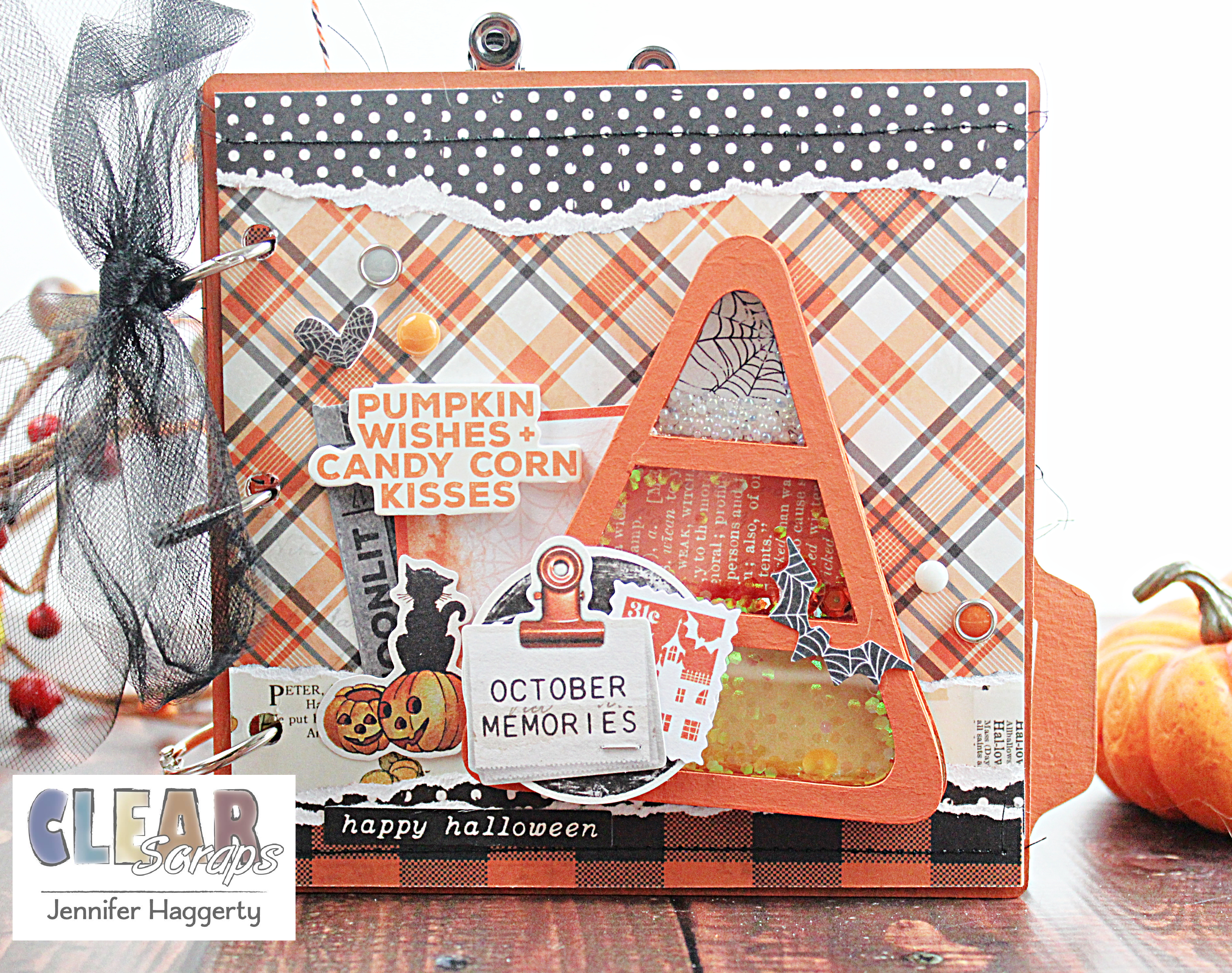 For my project, I used the 6×6 3 Tabbed Chipboard Album and the Candy Corn Mini Shaker Shape.