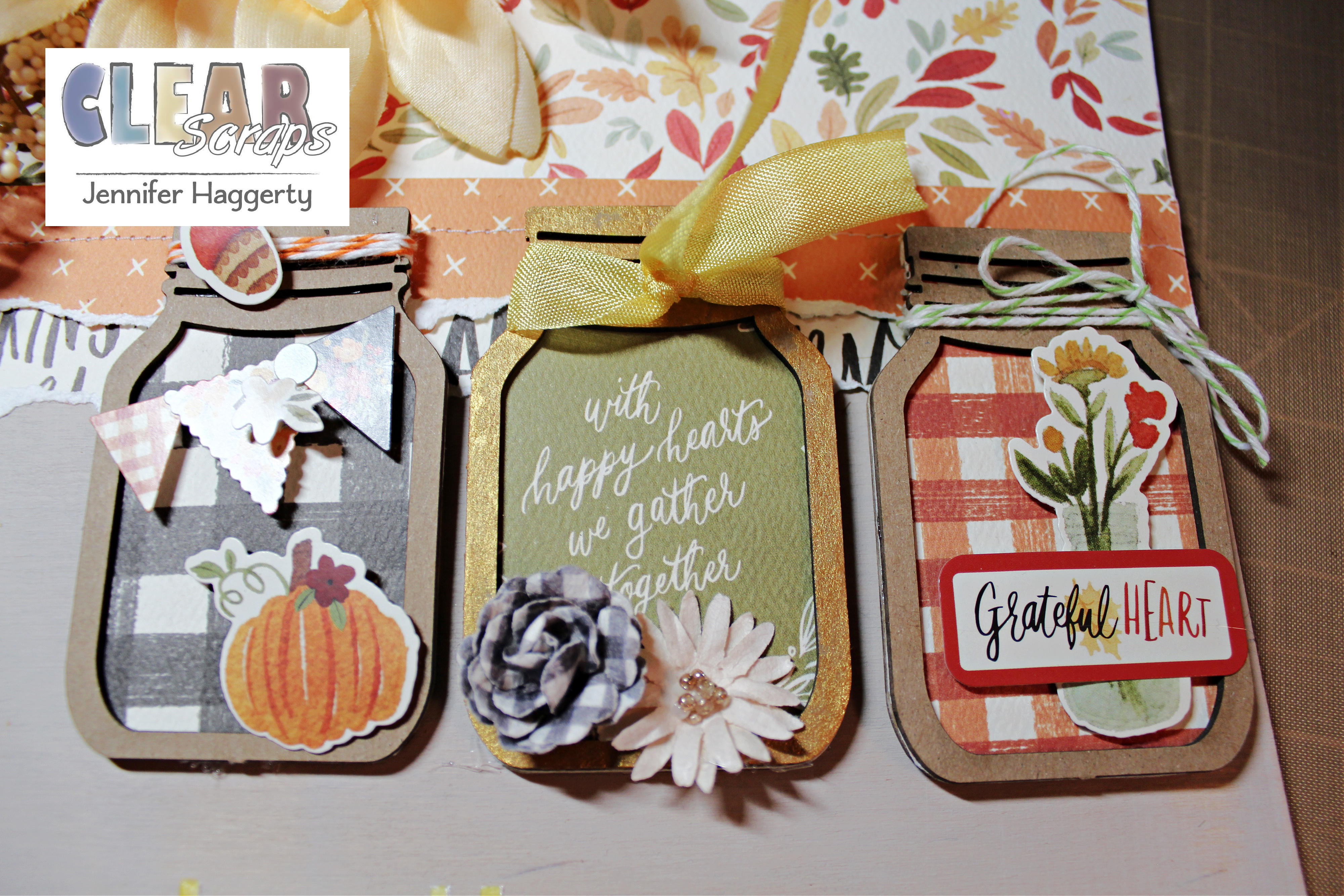 I decorated three of the Mason Jar Chipboard Embellishment Shapes as shown and adhered them with my Beacon 3-in-1 Adhesive.