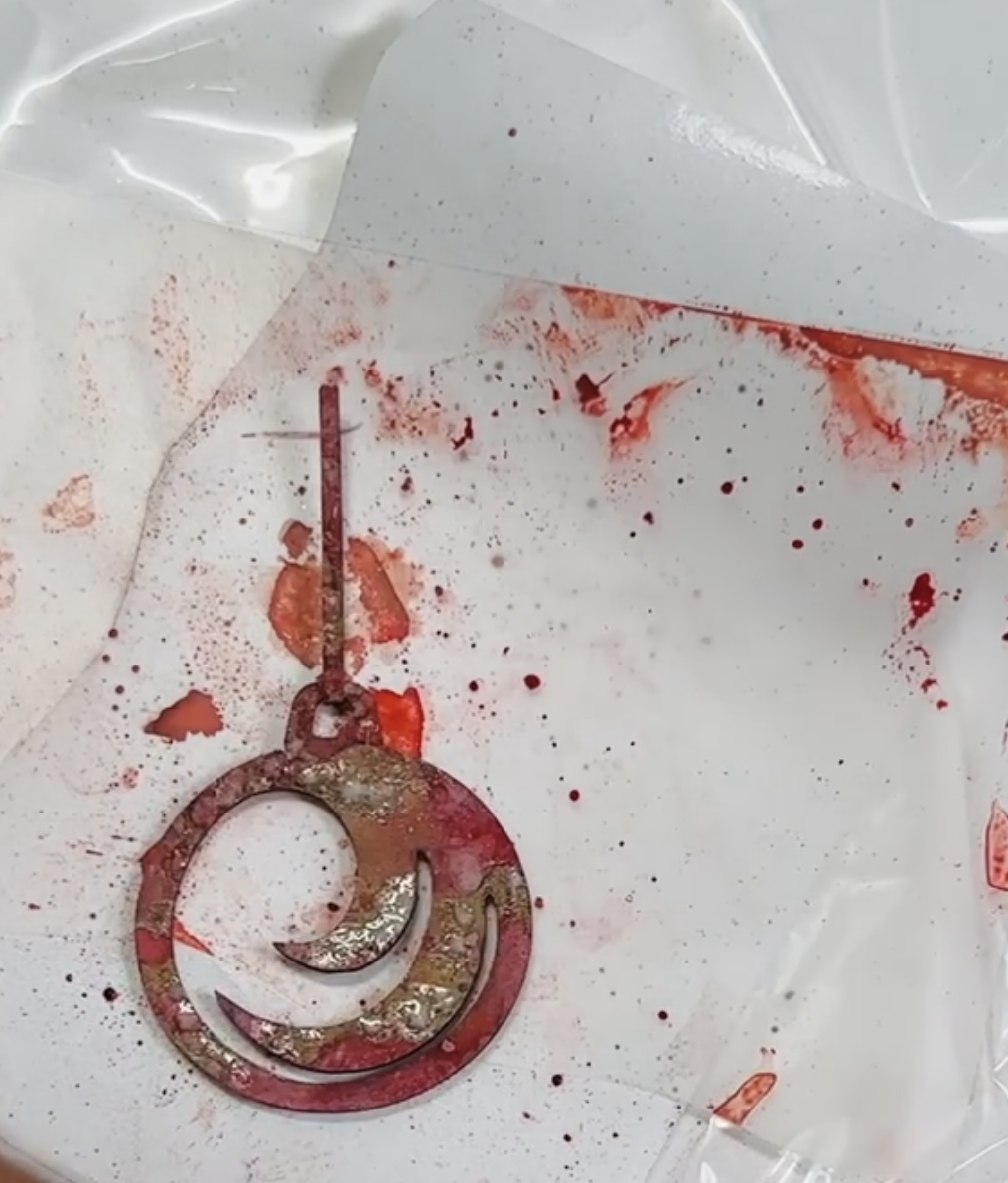 I chose to use a distress oxide sprays to add a base layer of color. I then went in with red embossing powder and added splotches of color to add texture and interest.