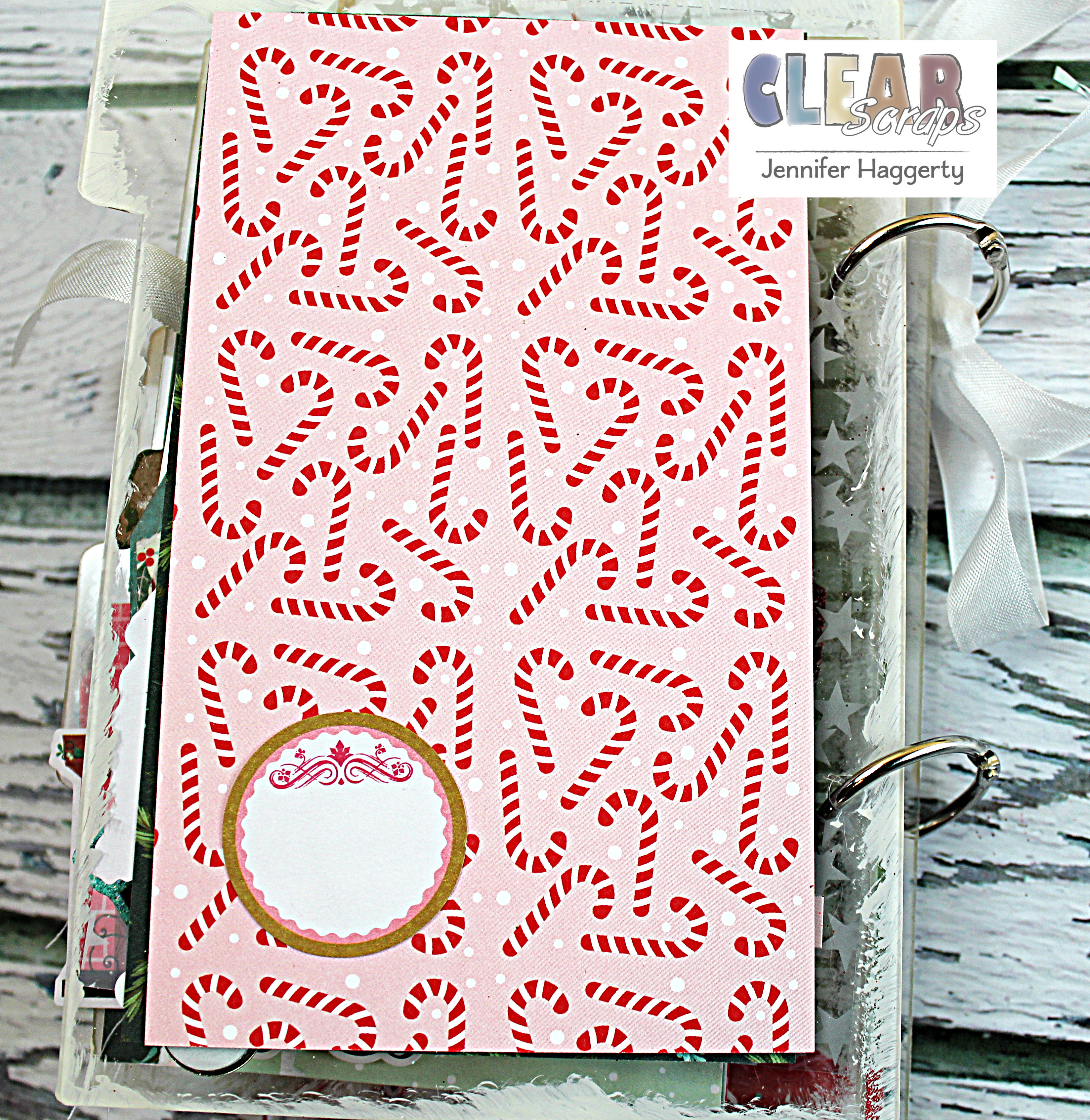 I covered the back of my album with a great candy cane pattern and added a circle journaling spot to add the date.