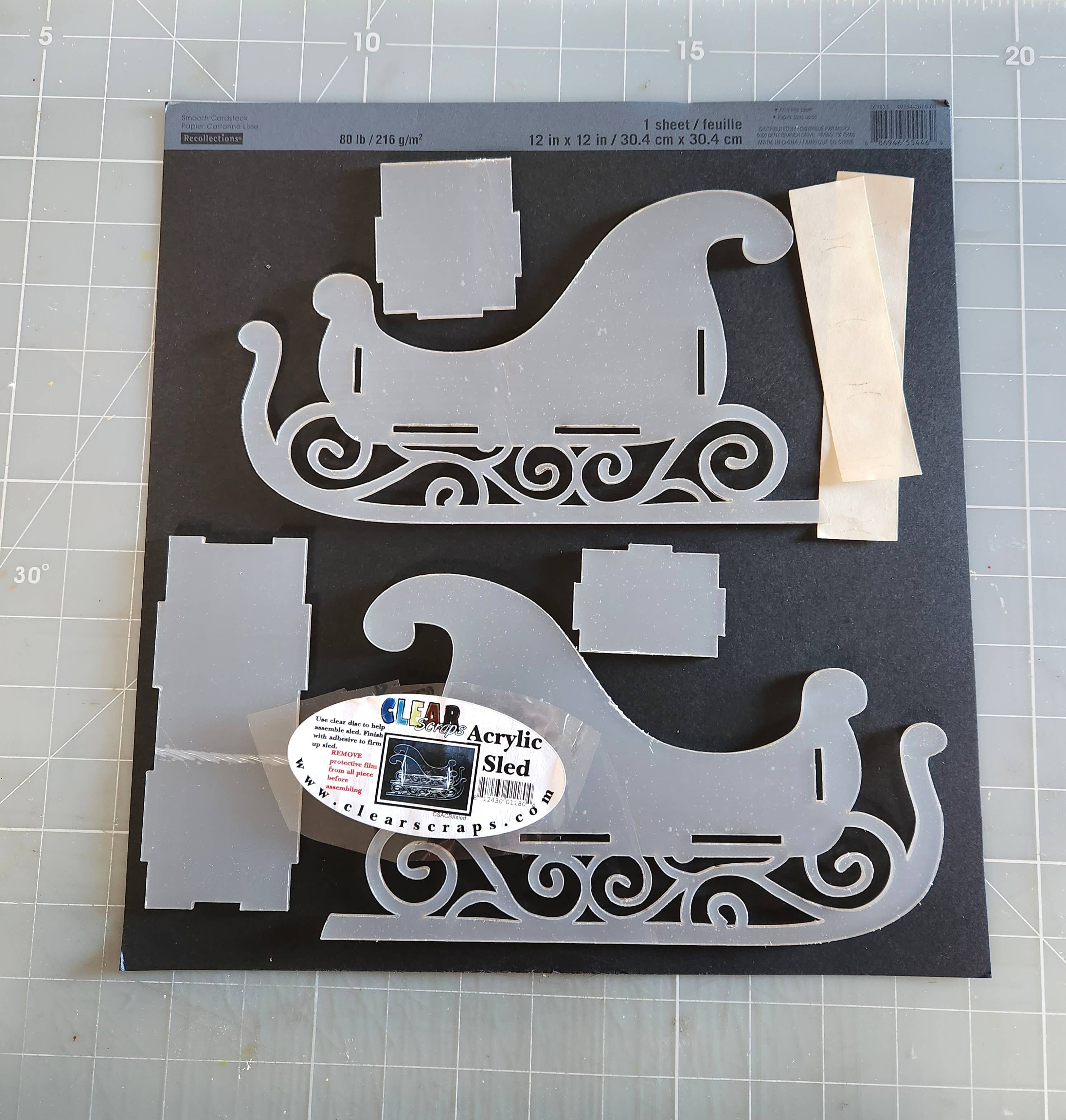 Remove all 5 acrylic pieces from your package. You will need to peel off the protective film from all pieces on both sides. I like to peel off one side at a time as I work. That way you won't scratch your acrylic.