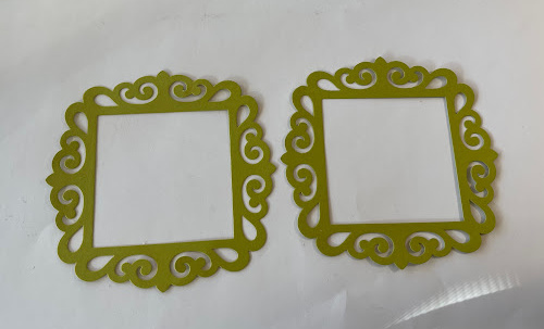 I began by cutting out two cardstock frames that are the same and then glued them together at the edges making sure to leave enough space to slide a photo in.
